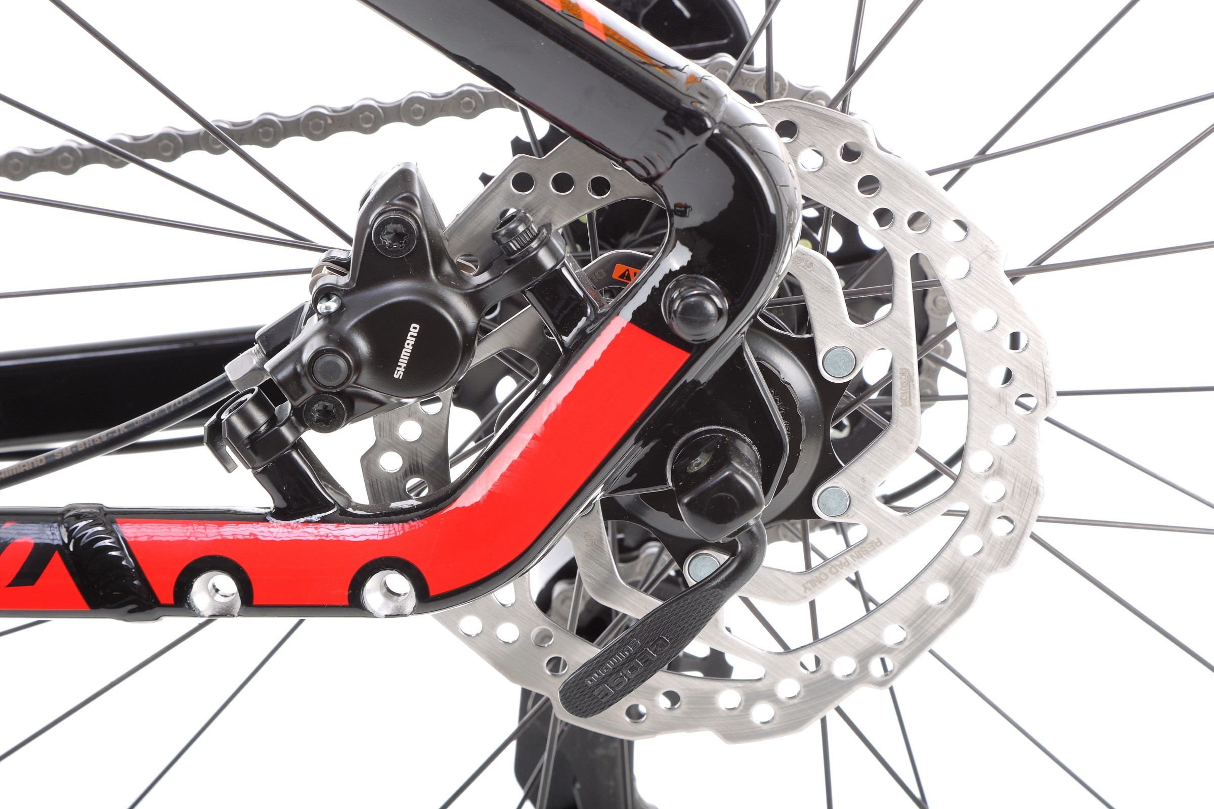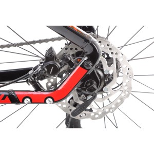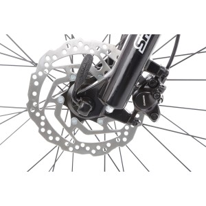 Rower wyposażono w hamulce tarczowe mechaniczne, które współpracują z tarczami 180 mm. Dźwignie hamulca są zintegrowane z manetkami Shimano ST-EF505, co gwarantuje szybkie i skuteczne zatrzymanie roweru. System ten zapewnia pełną kontrolę i bezpieczeństwo, idealnie sprawdzając się zarówno na mokrym, jak i suchym podłożu.