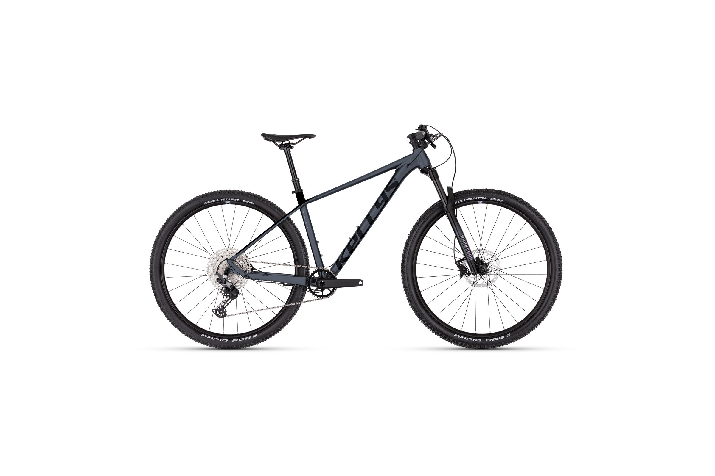 Rower toczy się na szybkich i stabilnych kołach 29". Obręcze KLS Asesino 25 Disc oraz piasty SHIMANO Deore TC-500-MS-B tworzą solidny zestaw. Opony SCHWALBE Rapid Rob 57-622 (29"x2.25) z wkładką K-Guard oferują znakomitą przyczepność, niski opór toczenia i ochronę przed przebiciami.