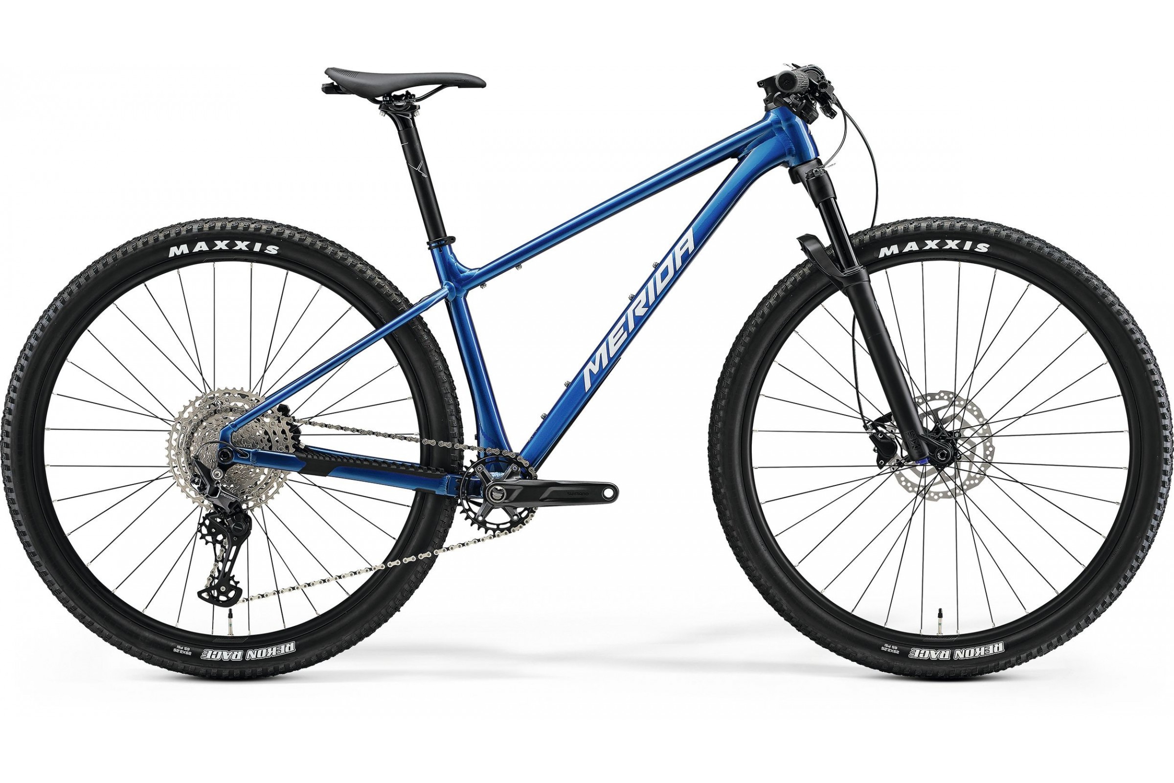 Rower posiada koła Merida COMP CC II z aluminiowymi obręczami o szerokości wewnętrznej 25 mm, przystosowane do systemu tubeless. Opony Maxxis Rekon Race 29x2.25" oferują świetną przyczepność i niskie opory toczenia, sprawdzając się zarówno na szybkich trasach XC, jak i wymagających szlakach.