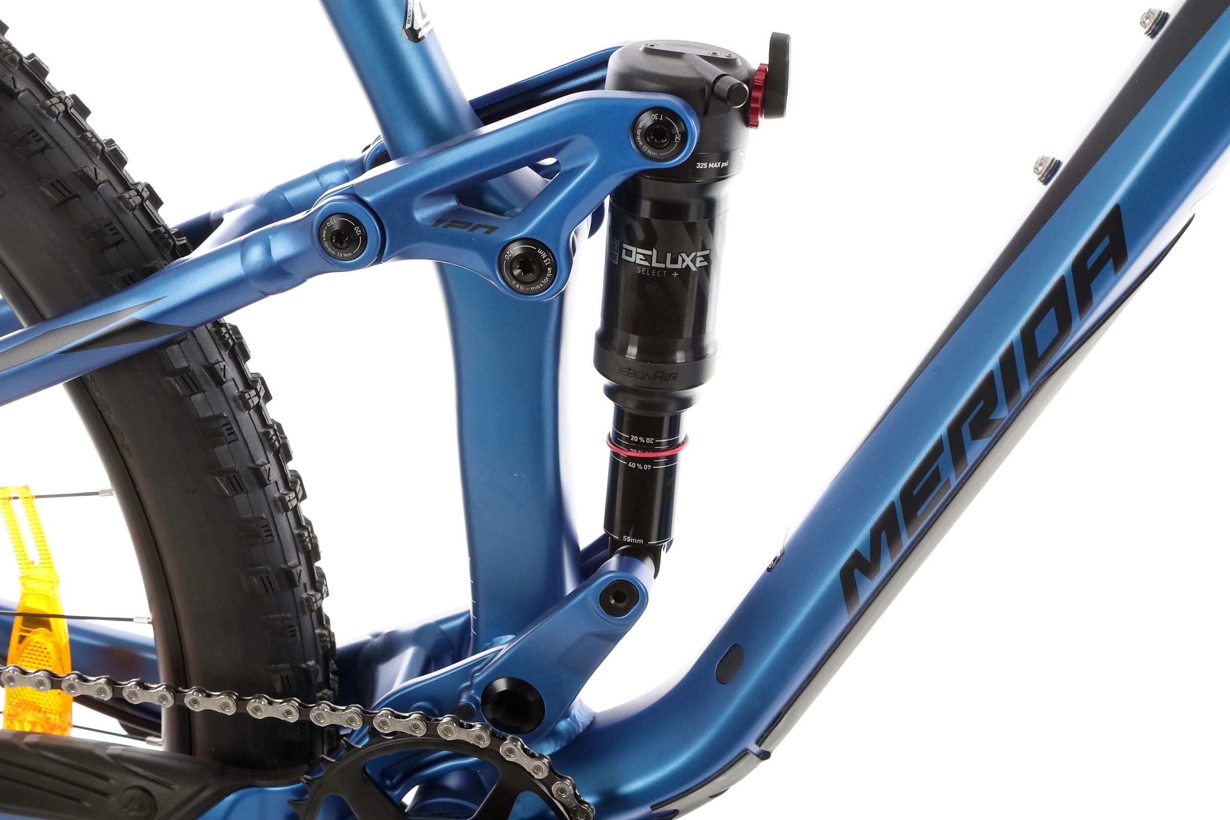 Z przodu zastosowano amortyzator Marzocchi Z2 Air o skoku 130 mm, który doskonale tłumi nierówności i pozwala na płynną jazdę nawet po najbardziej wymagających trasach. Tylny amortyzator Rock Shox Deluxe Select+ z blokadą zapewnia dodatkowy komfort oraz możliwość dostosowania pracy zawieszenia do aktualnych warunków. To połączenie gwarantuje, że żaden korzeń ani kamień nie będą przeszkodą na Twojej drodze.