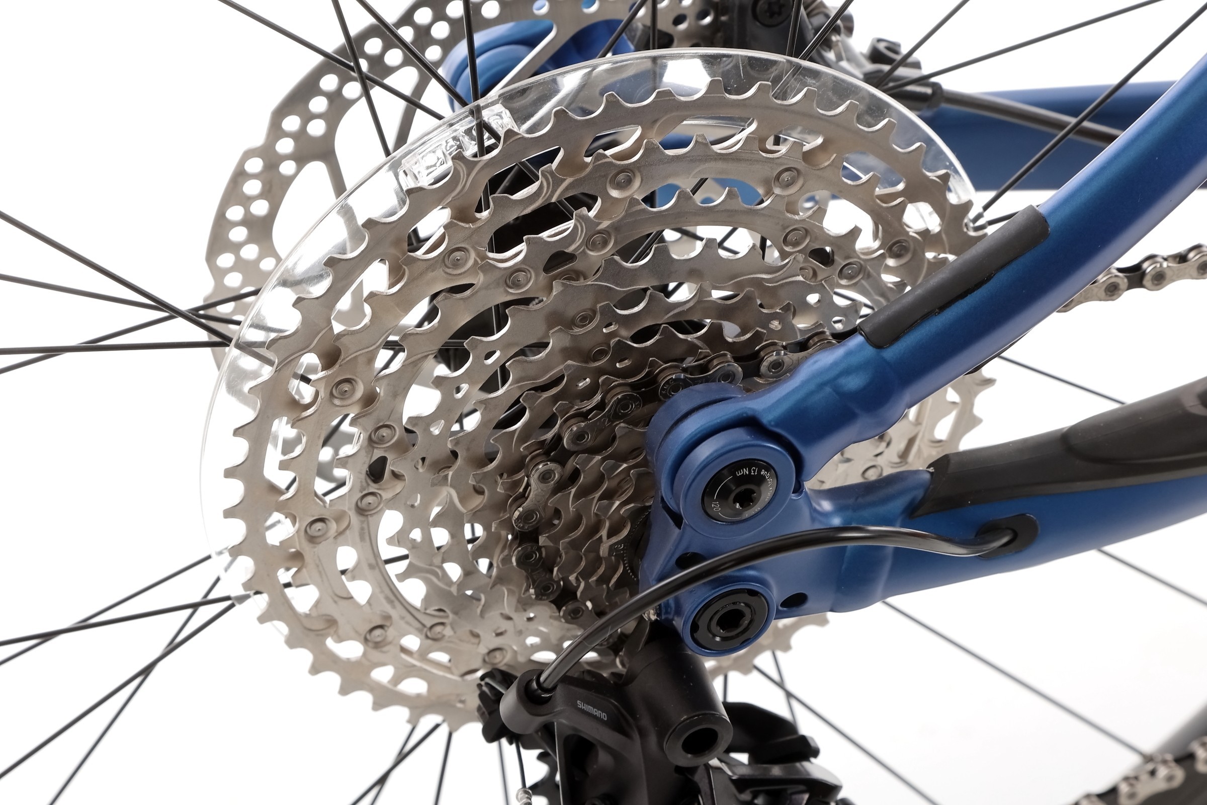 Rower wyposażono w nowoczesny napęd Shimano Deore M6100 1x12, który oferuje szeroki zakres przełożeń (kaseta 10-51). Manetki Shimano SL-MT500-IL oraz korba Race Face Ride 32 zęby gwarantują płynną i precyzyjną zmianę biegów, co pozwala bez problemu pokonywać zarówno strome podjazdy, jak i szybkie zjazdy.