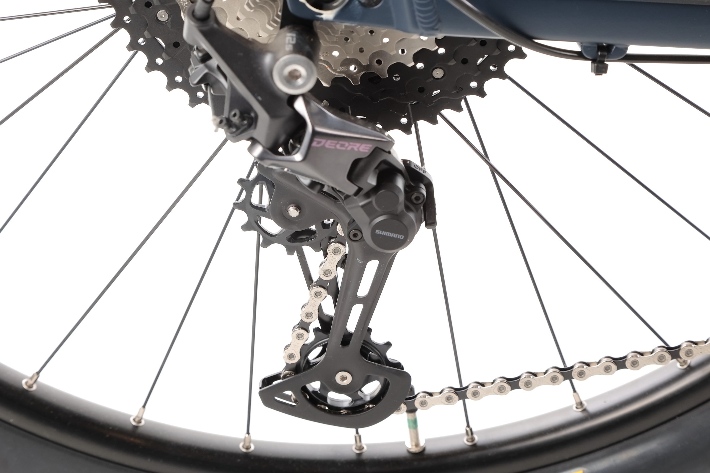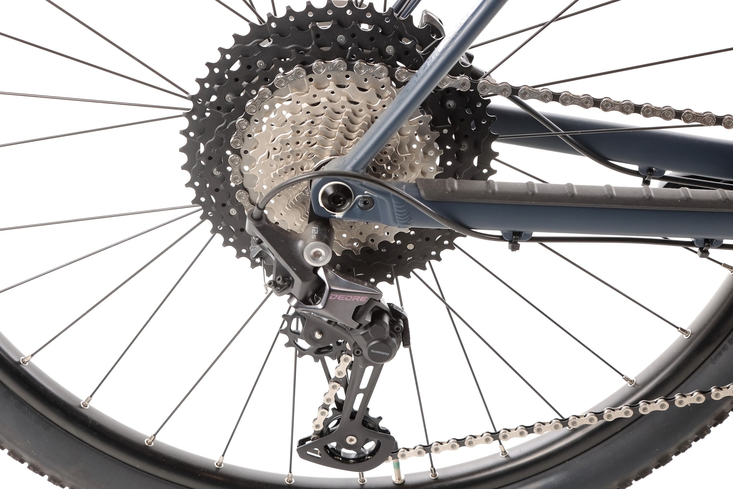 W modelu Alma H30 zastosowano nowoczesny i sprawdzony napęd oparty na komponentach Shimano Deore M6100. Manetka obsługuje przerzutkę tylną w systemie 12 biegów, z kasetą Sun Race 11-51T oraz korbą Shimano MT511 32T. Dzięki temu rower idealnie spisuje się zarówno na stromych podjazdach, jak i szybkich odcinkach w terenie.