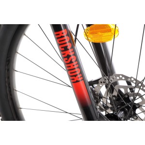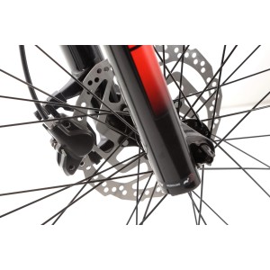 Przód roweru wyposażony został w amortyzator SR Suntour Raidon 32 o skoku 100 mm i standardzie Boost. To solidne i precyzyjne rozwiązanie, które świetnie tłumi nierówności i pozwala zachować pełną kontrolę nad rowerem w wymagającym terenie.
