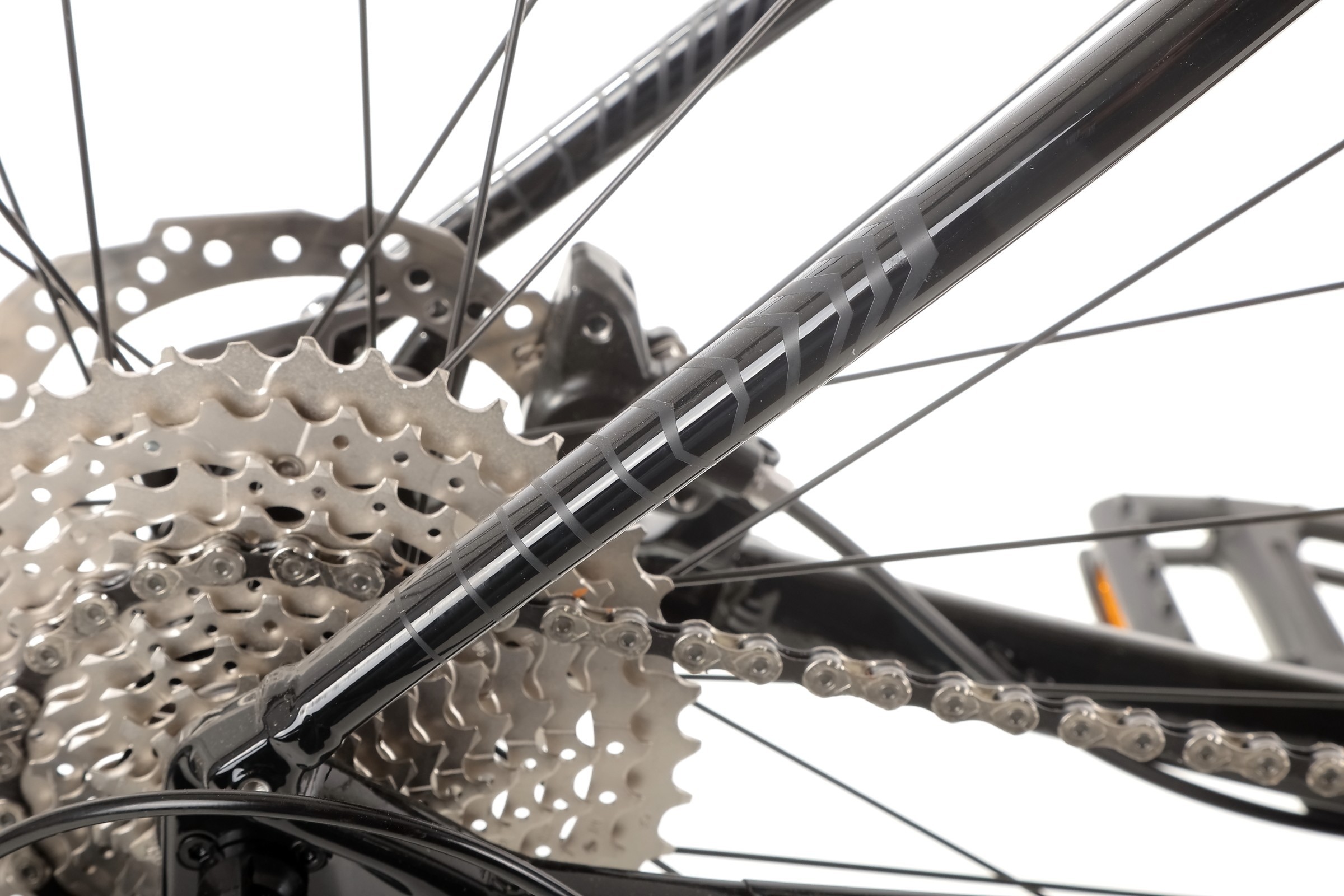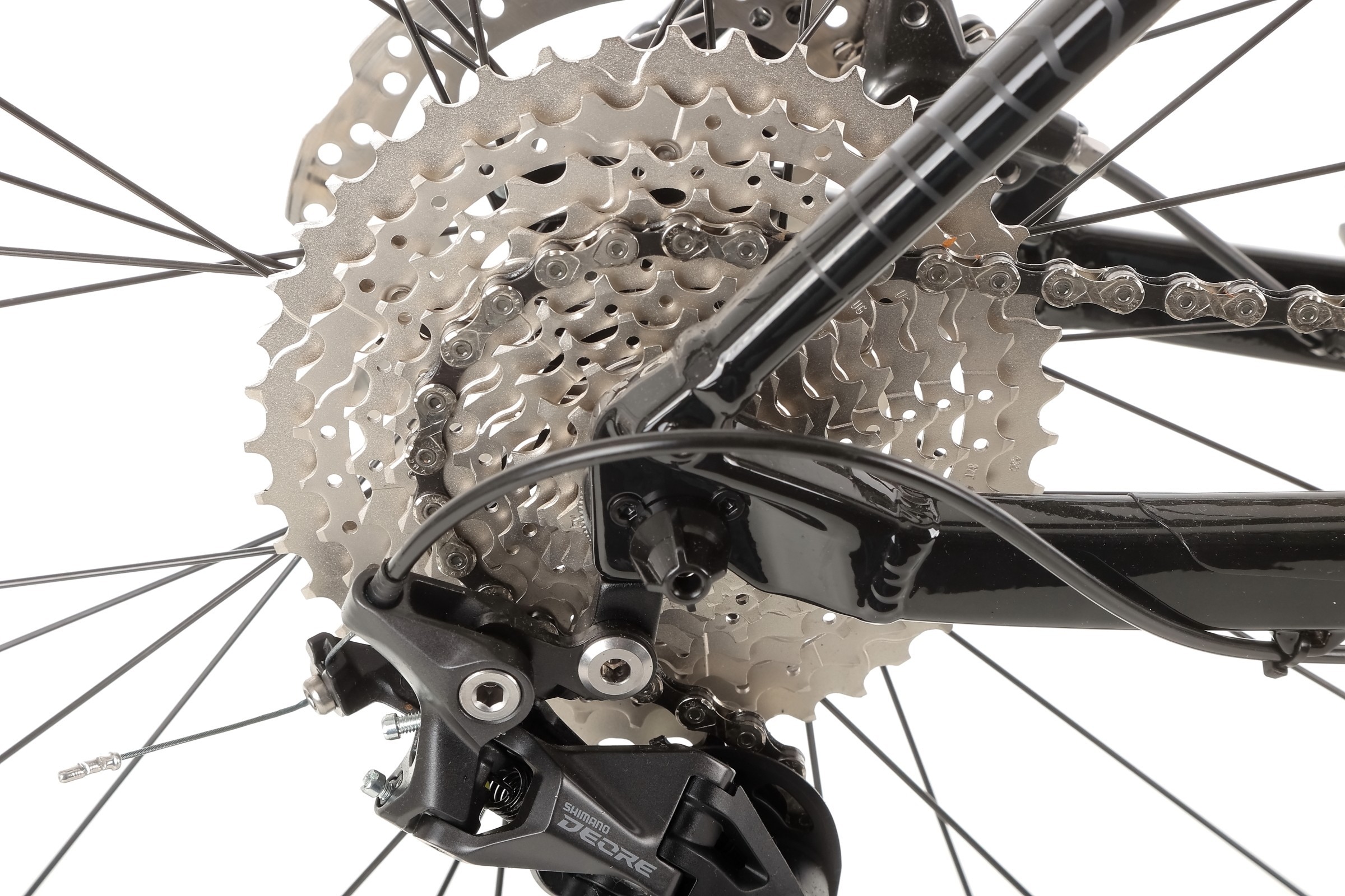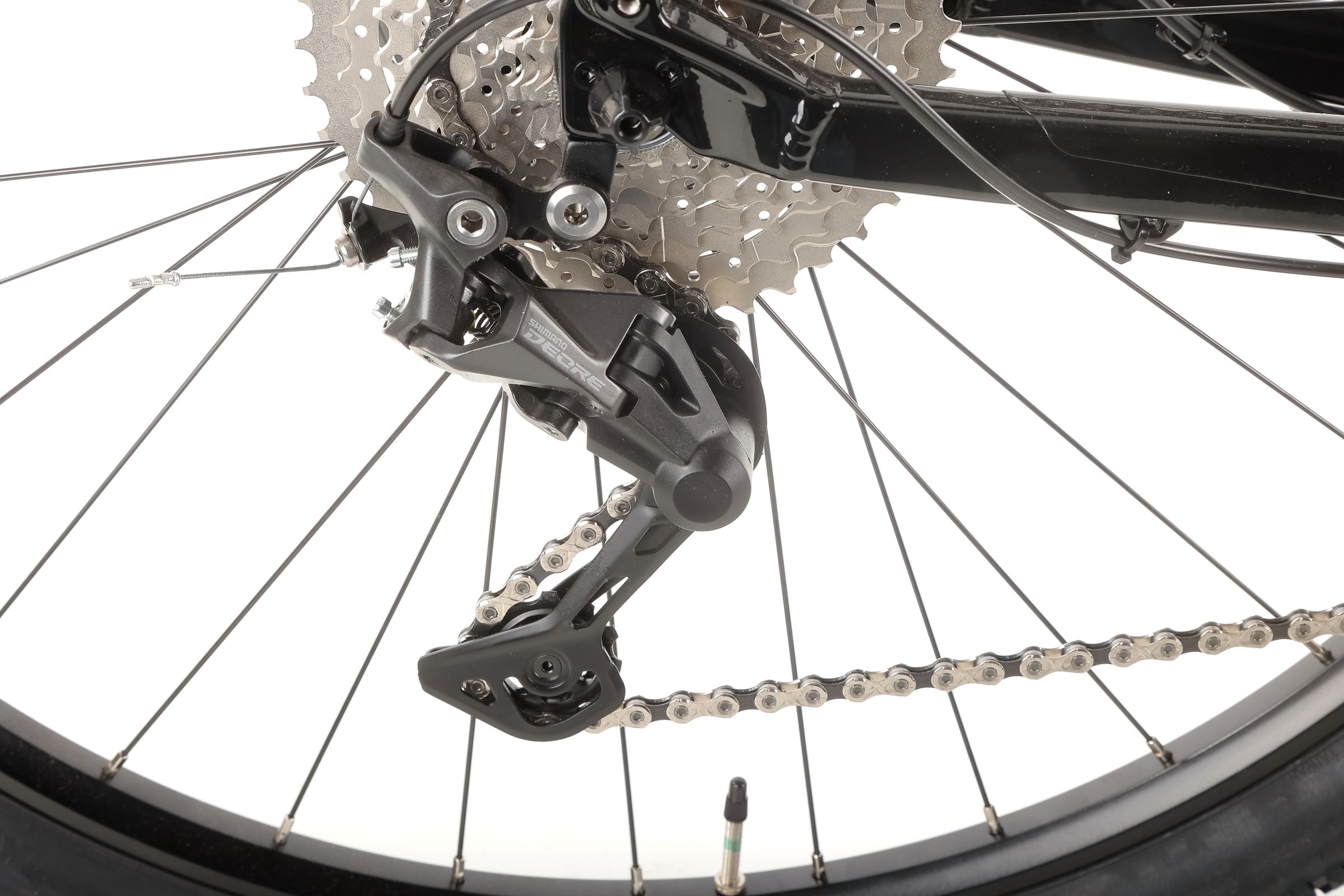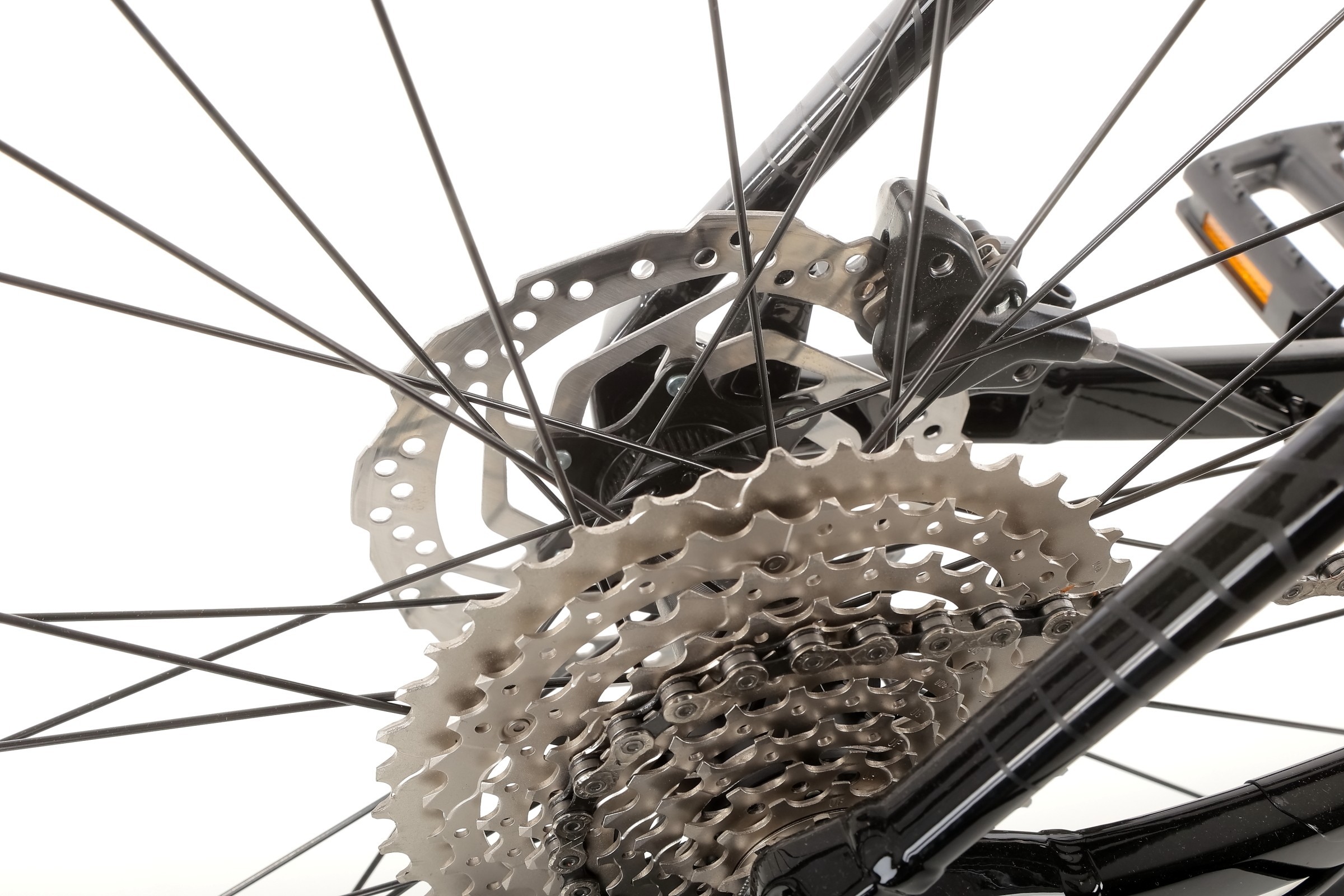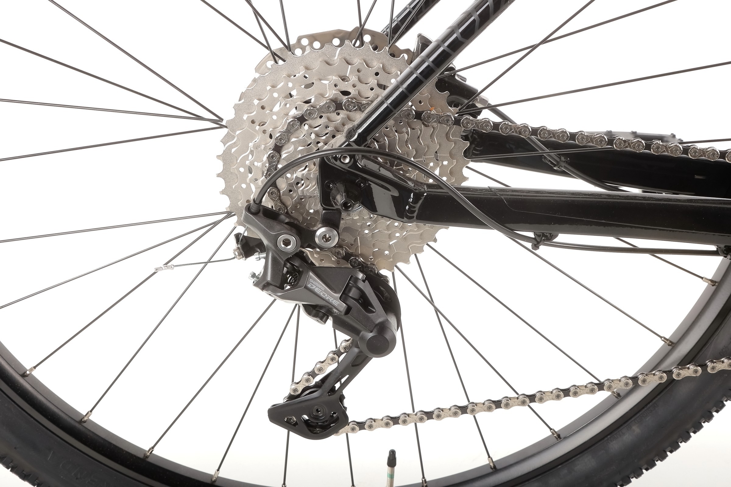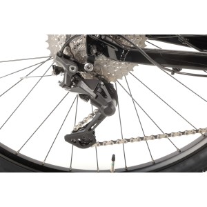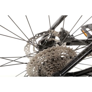 Za napęd odpowiadają sprawdzone komponenty Shimano Deore – m.in. manetki M4100, przerzutka tylna M4120 SGS Shadow Plus oraz przednia M6025. Szeroki zakres przełożeń (kaseta Shimano 11–42T 10-speed) pozwala pokonywać zarówno strome podjazdy, jak i szybkie zjazdy, gwarantując płynne i precyzyjne zmiany biegów.