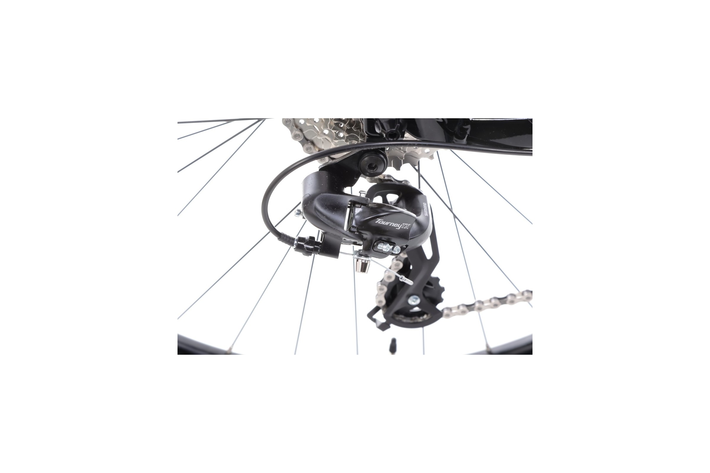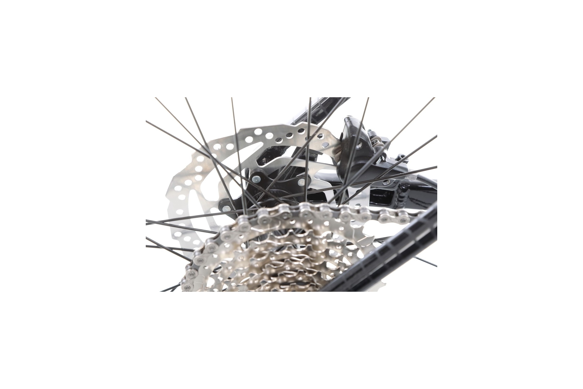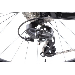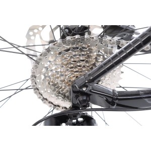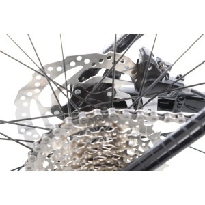 Napęd opiera się na korbie Alloy forged 22x36T i kasecie SunRace 11-34T 8-biegowej, co pozwala dopasować przełożenia zarówno do podjazdów, jak i szybkich odcinków. Zmianami sterują manetki Microshift TS38, które współpracują z przerzutką przednią Shimano M315 oraz tylną Shimano Tourney TX800. Dzięki temu zmiana biegów jest precyzyjna i płynna, nawet podczas bardziej wymagającej jazdy.