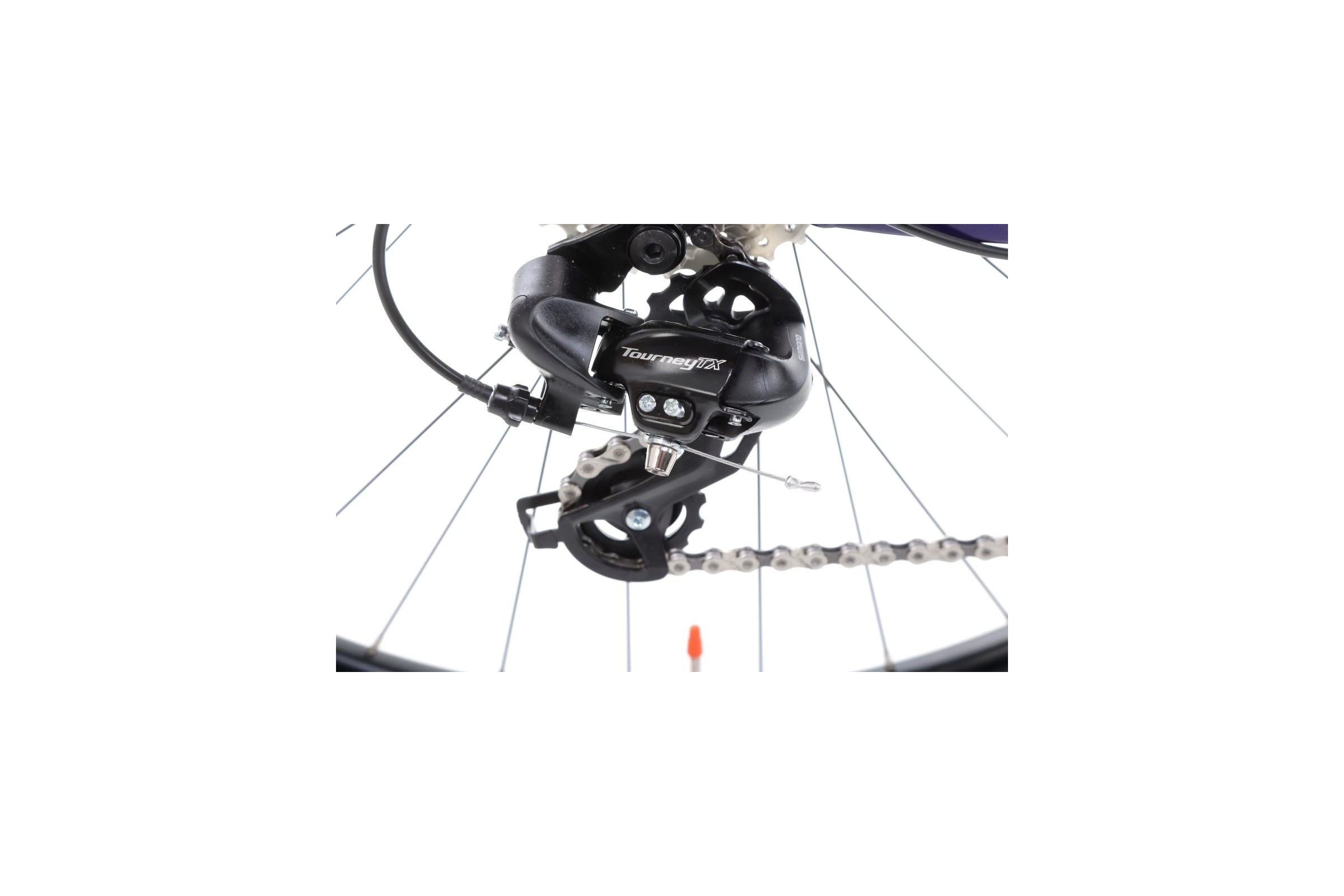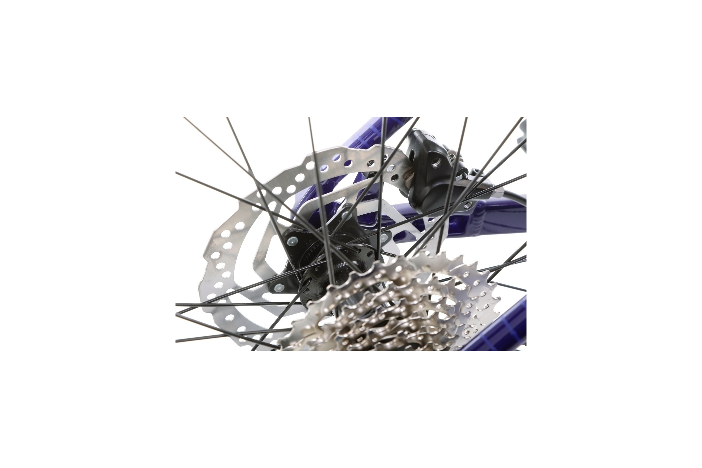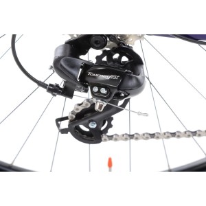 Za komfort jazdy odpowiada sprawdzony zestaw osprzętu: korba Alloy forged 22x36T, kaseta SunRace 11-34T 8-rzędowa oraz napęd obsługiwany przez manetki Microshift TS38. Zmiany przełożeń realizują niezawodne przerzutki: Shimano M315 (przód) i Shimano Tourney TX800 (tył). Dzięki temu rower świetnie sprawdza się na podjazdach i zjazdach, oferując lekką i precyzyjną pracę.