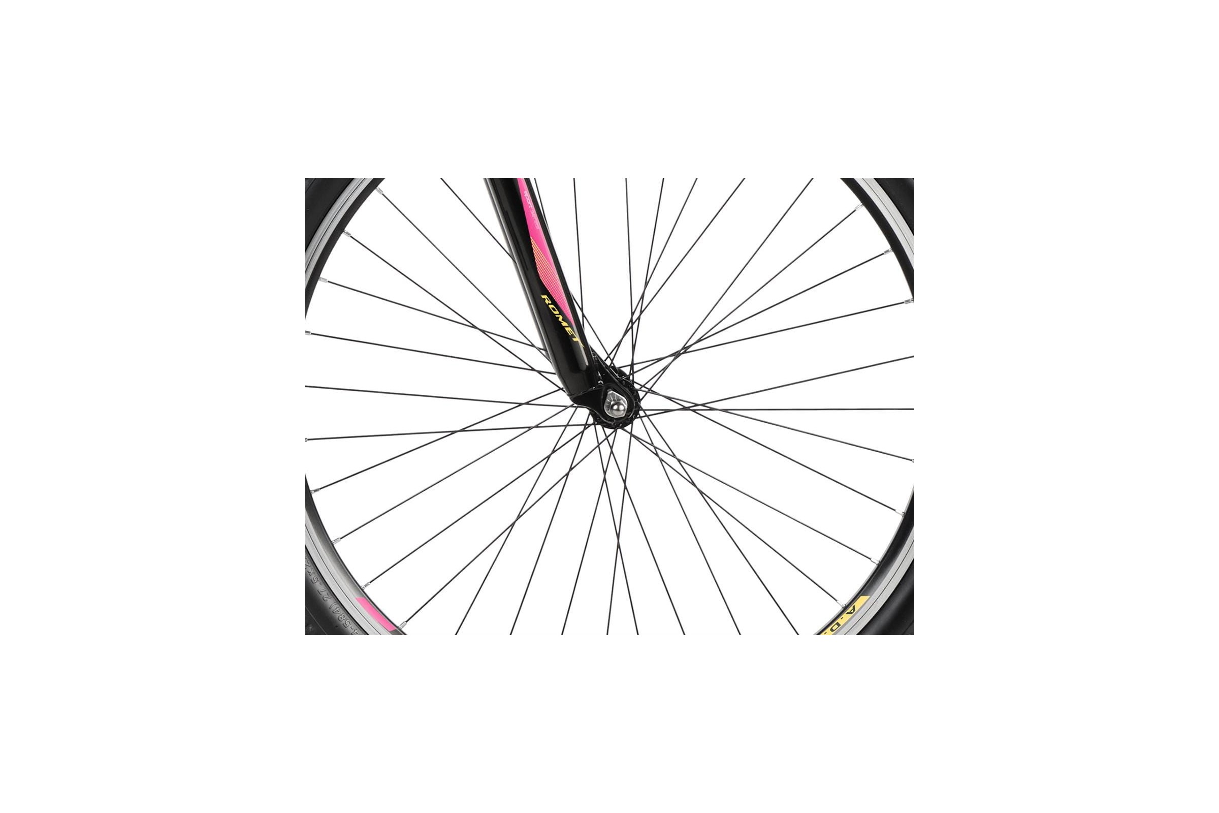 Romet Jolene 7.0 Limited został wyposażony w lekką, aluminiową kierownicę FOV 680mm, solidny wspornik siodła 31,6mm, a także wygodne siodło Vader. Całość uzupełniają trwałe stalowe piasty oraz niezawodne pedały FP-804.