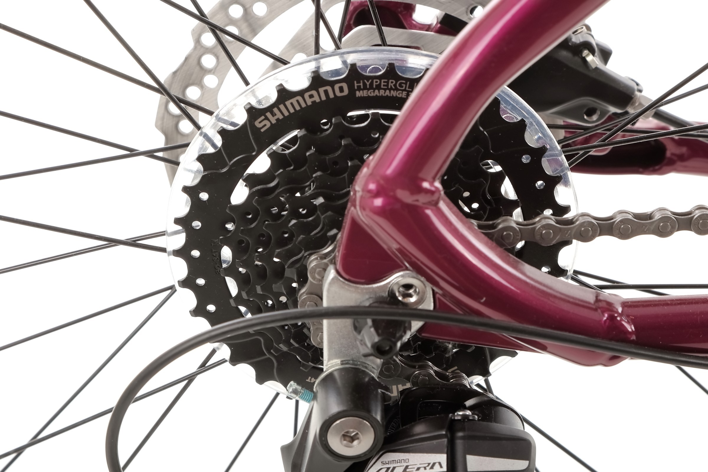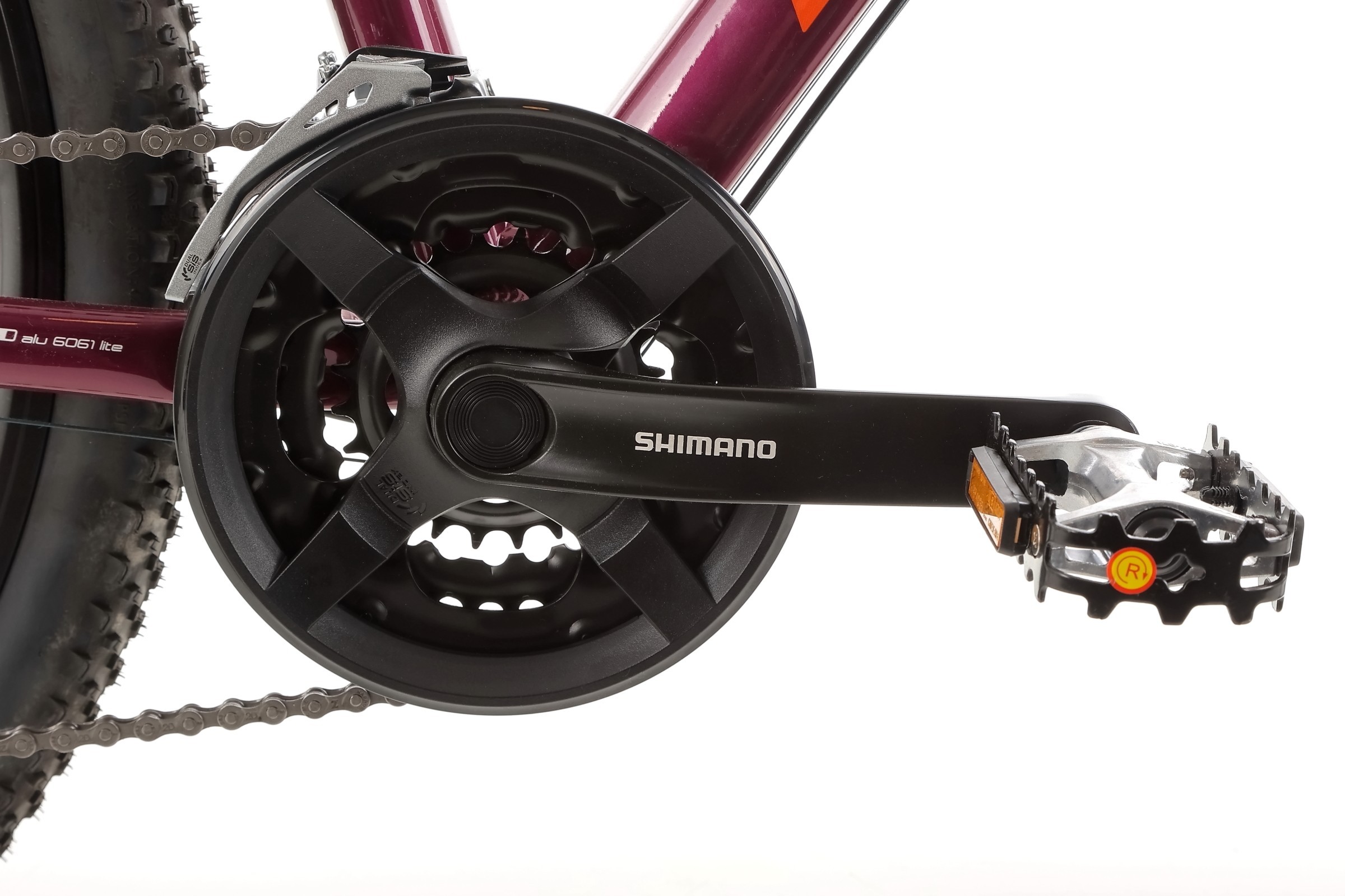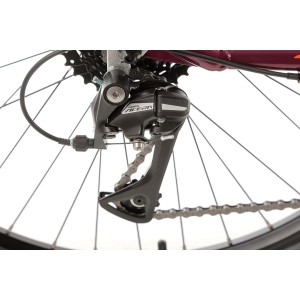 Napęd roweru opiera się na sprawdzonych komponentach Shimano: mechanizm korbowy Shimano Tourney TY-301 (42/34/24T, 170 mm) oraz manetki Shimano ST-EF505 z 3 biegami z przodu i 8 z tyłu, co daje łącznie 24 przełożenia. Przerzutki to przednia Shimano Tourney FD-TY700 i tylna Shimano Acera RD-M3020 SGS, a kaseta Shimano CS-HG31-8 (11-34T) zapewnia płynną i precyzyjną zmianę biegów, dostosowaną do różnych warunków jazdy.