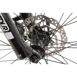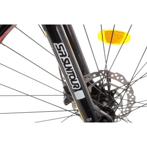 Wyposażony w widelec amortyzowany Suntour XCE z 100 mm skoku, rower skutecznie tłumi nierówności i wyboje na trasie, co przekłada się na komfort jazdy i lepszą kontrolę nad rowerem w trudnym terenie.