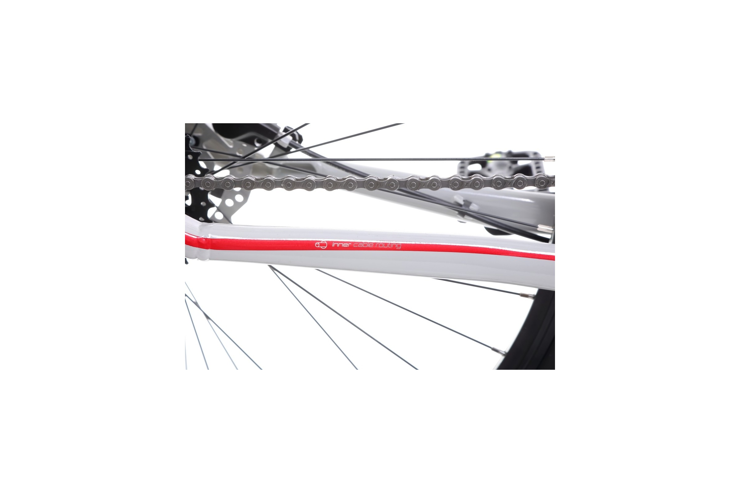 - aluminiową ramę o sztywnej i lekkiej konstrukcji, w której wewnętrzne prowadzenie pancerzy, linek i przewodów hydraulicznych pozwala zachować lepszą estetykę i nowoczesny wygląd
