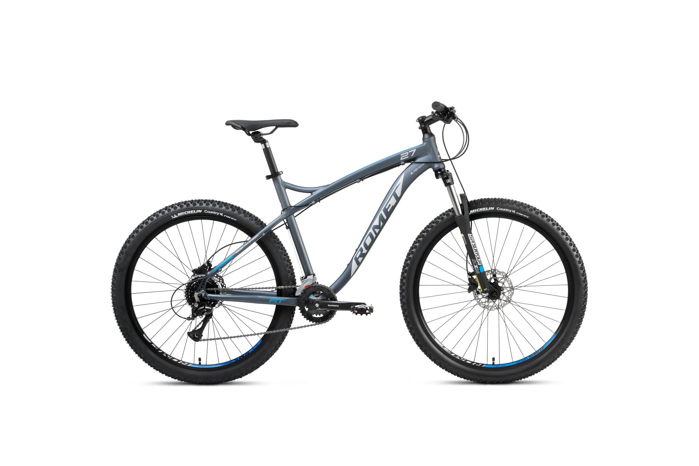 Rower górski Romet Rambler Fit 27,5 2024 - czarny-srebrny-niebieski