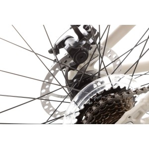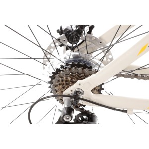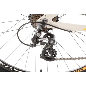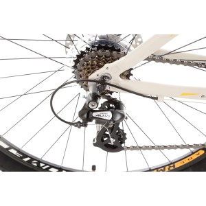 Rower posiada aluminiową ramę wykonaną z wysokiej jakości stopu 6061, co zapewnia wyjątkową lekkość i wytrzymałość. Dzięki tej solidnej konstrukcji, idealnie sprawdza się zarówno na asfalcie, jak i na mniej wymagających szlakach, gwarantując stabilność i komfort, nawet podczas długich wypraw.