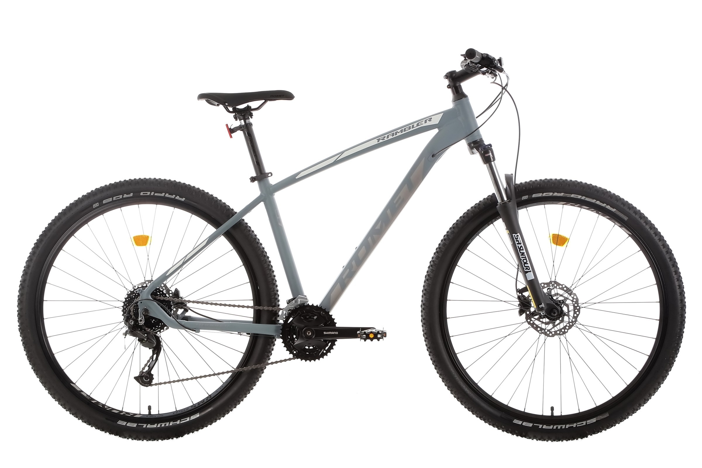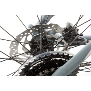 Romet Rambler R9.4 to pewność działania dzięki kompletnemu napędowi Shimano. Mechanizm korbowy Shimano FC-MT101 z trzema tarczami (40/30/22T) oraz zestaw przerzutek Shimano Altus FD-M2000 (przód) i Shimano Alivio RD-M3100 SGS Shadow (tył) zapewniają płynną zmianę aż 24 przełożeń. Kaseta Shimano CS-HG200-8 (11-36T) umożliwia łatwe pokonywanie zarówno stromych podjazdów, jak i szybkich odcinków.