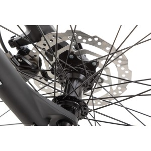 Rower wyposażono w duże, 29-calowe koła z lekkimi aluminiowymi, dwukomorowymi obręczami, które gwarantują wytrzymałość i stabilność. Opony 29x2,1 świetnie sprawdzają się zarówno w terenie, jak i na asfalcie, zapewniając dobrą przyczepność i komfort toczenia.