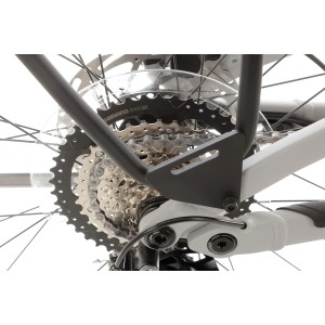 Rama została wykonana z lekkiego i trwałego stopu aluminium 6061. Jej nowoczesna konstrukcja sprawia, że idealnie nadaje się zarówno na miejskie ścieżki, jak i bardziej wymagające trasy. Cały rower waży 28,3 kg, co przy tej klasie wyposażenia stanowi doskonały kompromis między solidnością a komfortem użytkowania.
