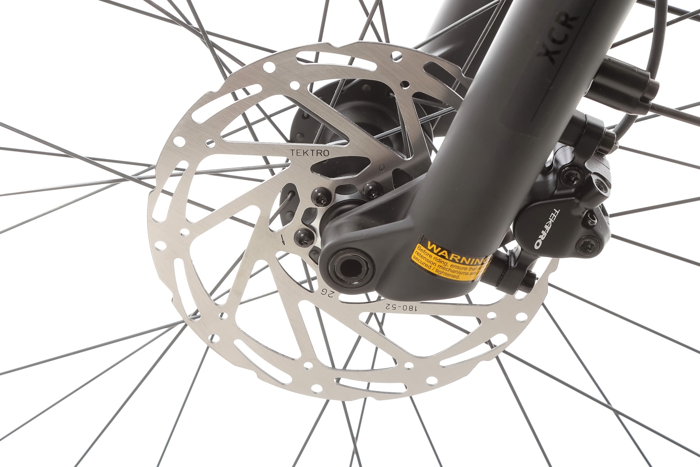 Za Twoje bezpieczeństwo odpowiadają hydrauliczne hamulce tarczowe Tektro Vela w połączeniu z tarczami Tektro TR-52 o średnicy 180 mm. To zestaw, który gwarantuje skuteczne hamowanie w każdych warunkach pogodowych i terenowych.