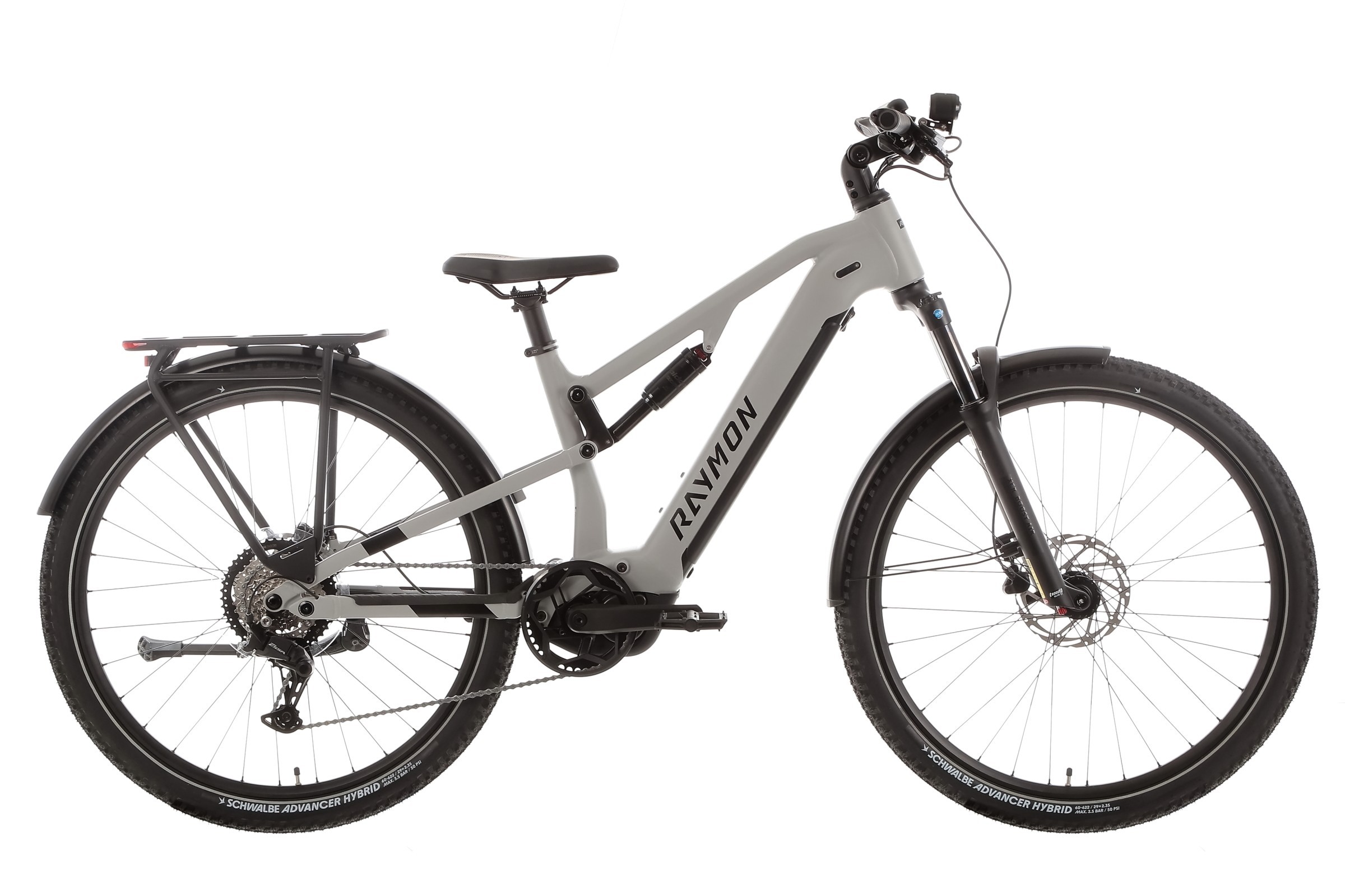 Duże koła 29” osadzone na obręczach Raymon VR24/DT210 w połączeniu z szerokimi oponami Schwalbe Advancer Hybrid Reflex 29x2.35” oferują stabilność, dobrą przyczepność i niski opór toczenia, zarówno w mieście, jak i w terenie.