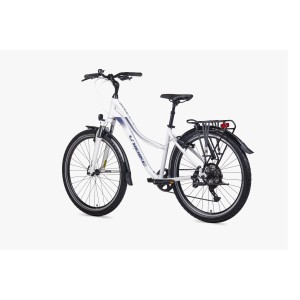 Sercem tego roweru jest wytrzymała i lekka rama wykonana z aluminium 6061-T6. To sprawdzona konstrukcja, która zapewnia idealny balans między sztywnością a komfortem użytkowania, co jest kluczowe podczas codziennej jazdy po mieście czy utwardzonych ścieżkach. Dzięki zastosowaniu wysokiej jakości stopu, rower jest odporny na warunki atmosferyczne i trudy eksploatacji. Waga całego roweru: ok. 15,4 kg.