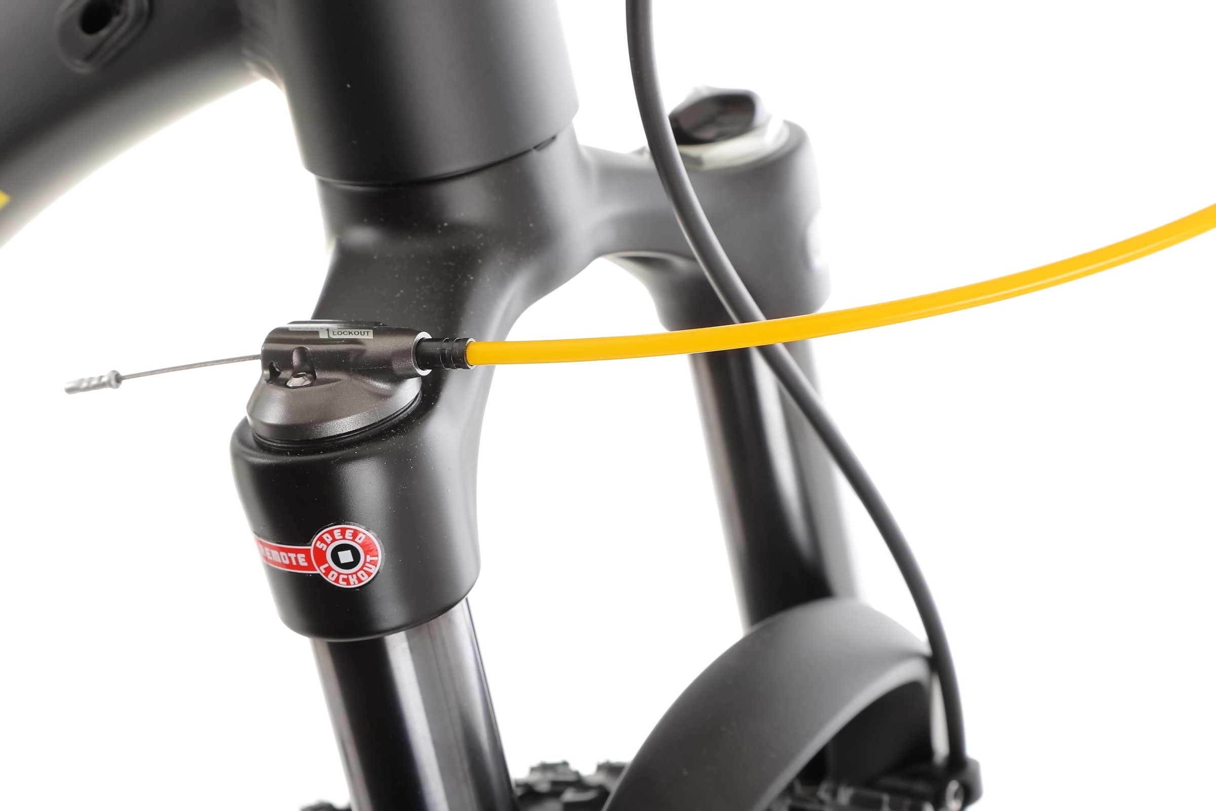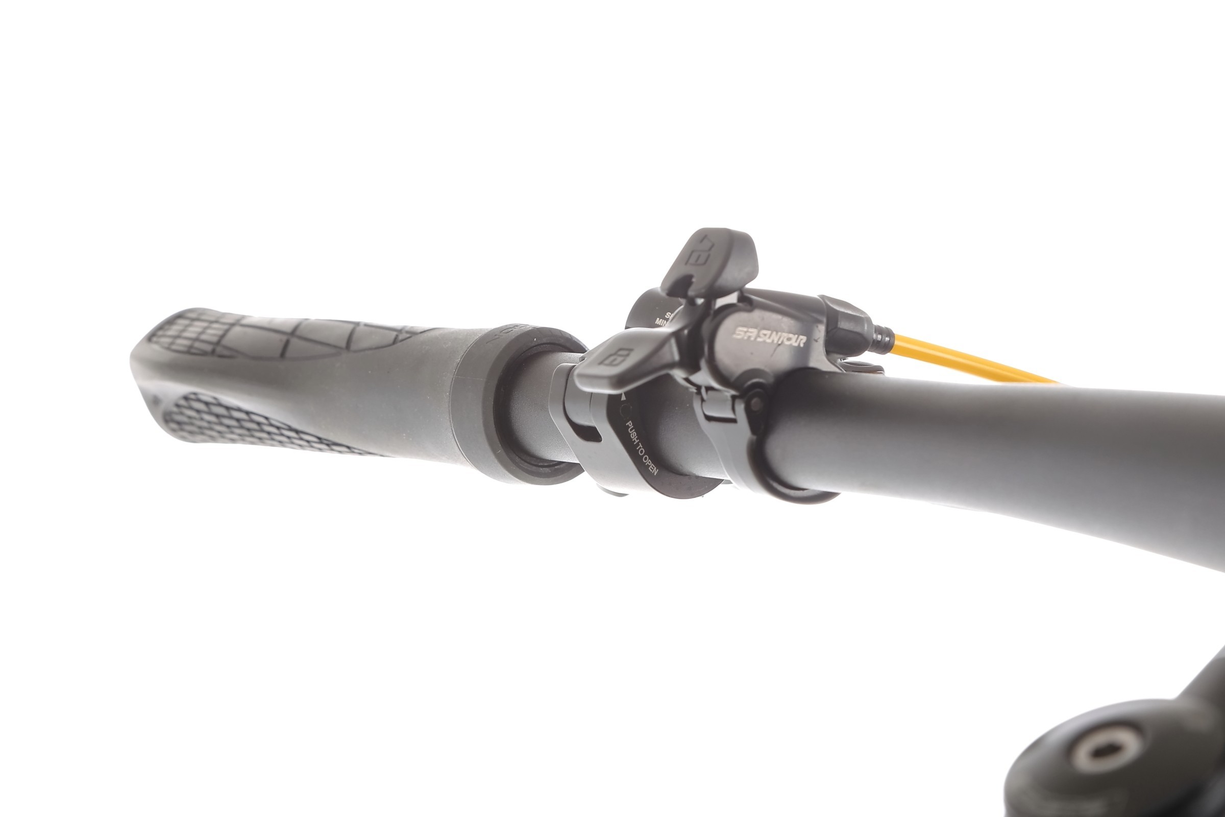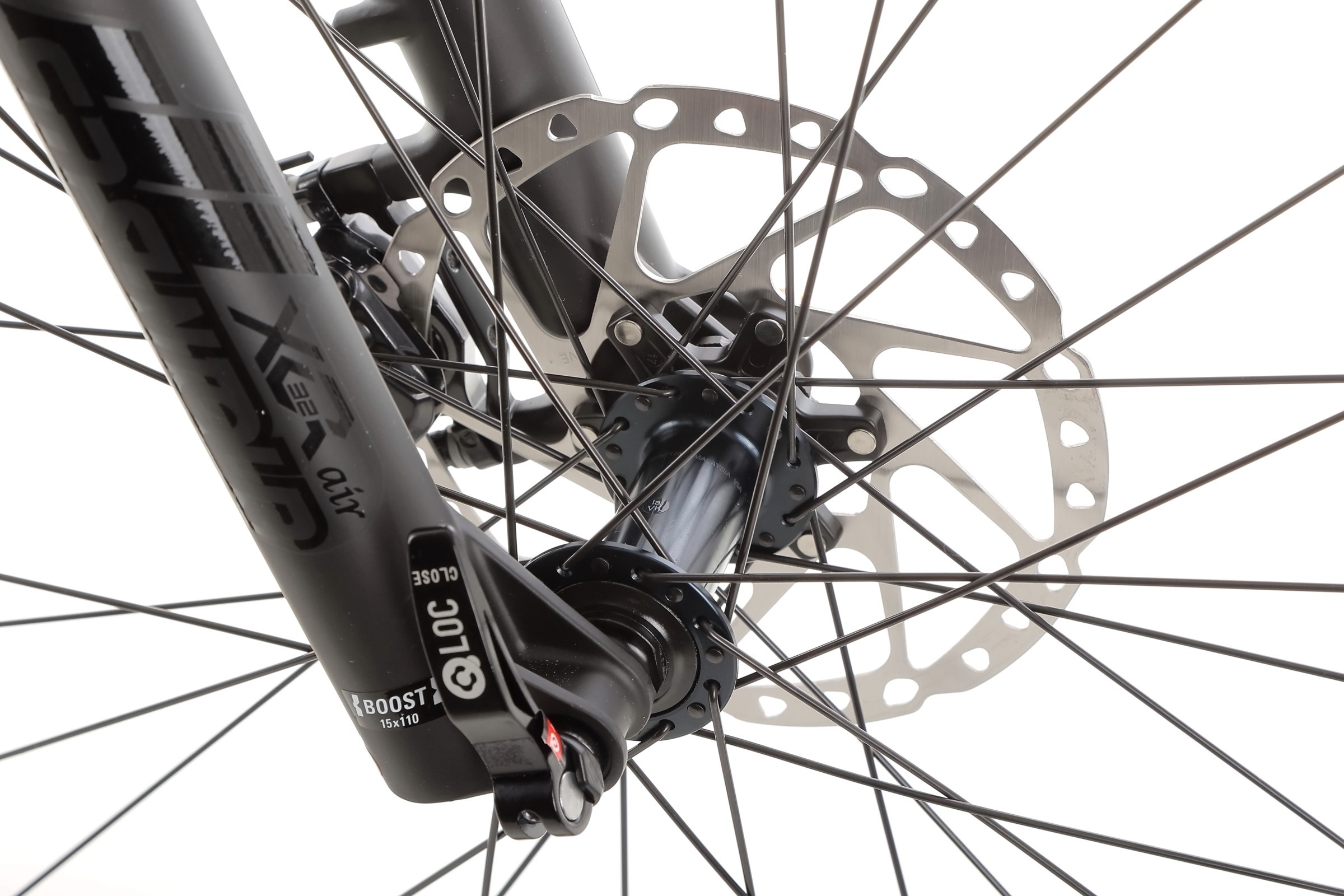 Rower wyposażony jest w widelec SR SUNTOUR XCR32 BOOST z amortyzacją powietrzną (AIR), który umożliwia precyzyjną regulację tłumienia odbicia oraz posiada hydrauliczny system blokady z dźwignią na kierownicy. Skok amortyzatora wynosi 100 mm, a oś to M15, co gwarantuje skuteczne tłumienie nierówności i komfort podczas jazdy terenowej.