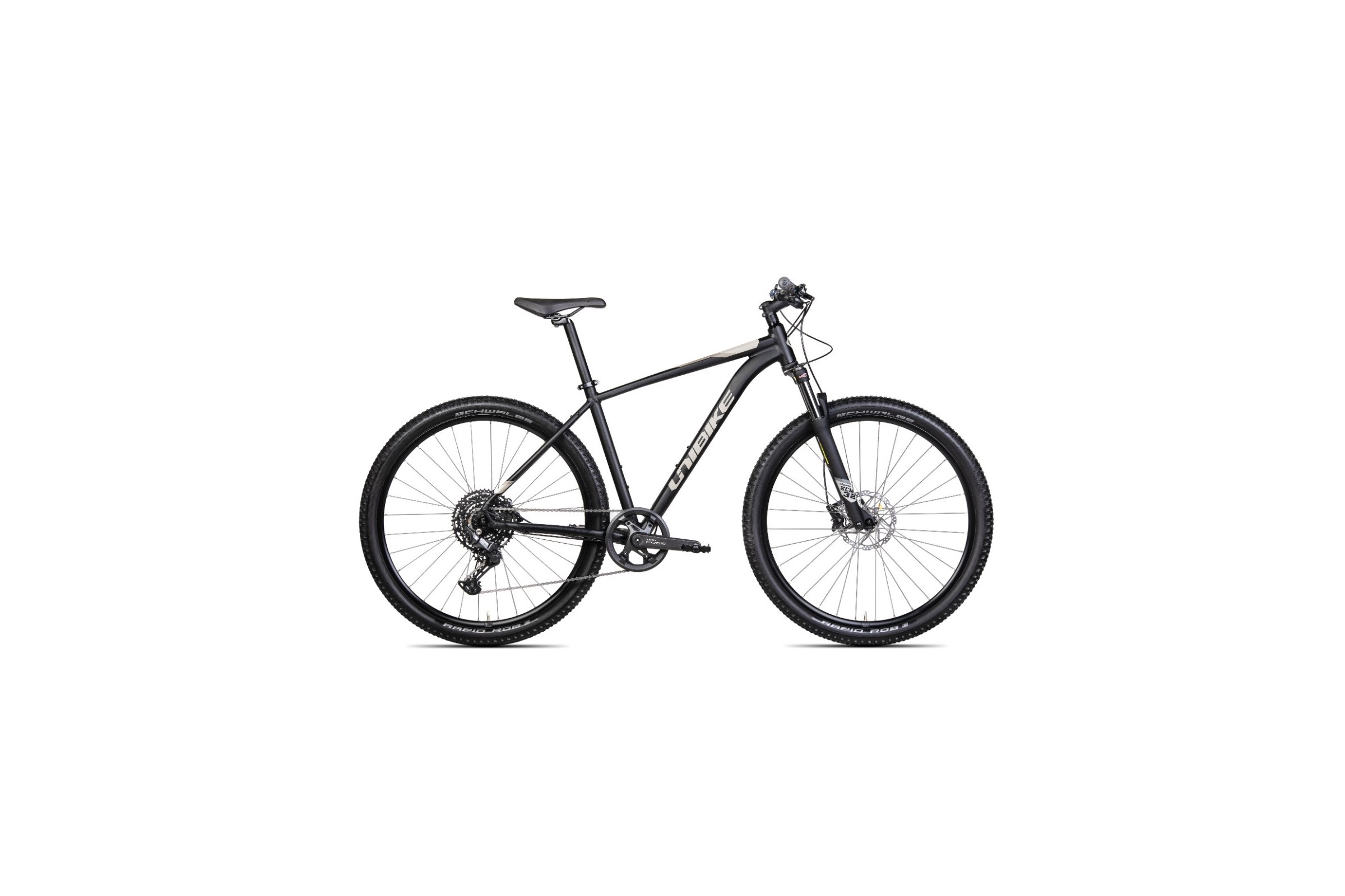 Rower został wyposażony w obręcze JHT z czarnymi zakuwkami oraz piasty SHIMANO QC300, co zapewnia trwałość i płynność toczenia. Opony SCHWALBE RAPID ROB 29x2.25 gwarantują świetną przyczepność na każdej nawierzchni – od asfaltu po leśne ścieżki.