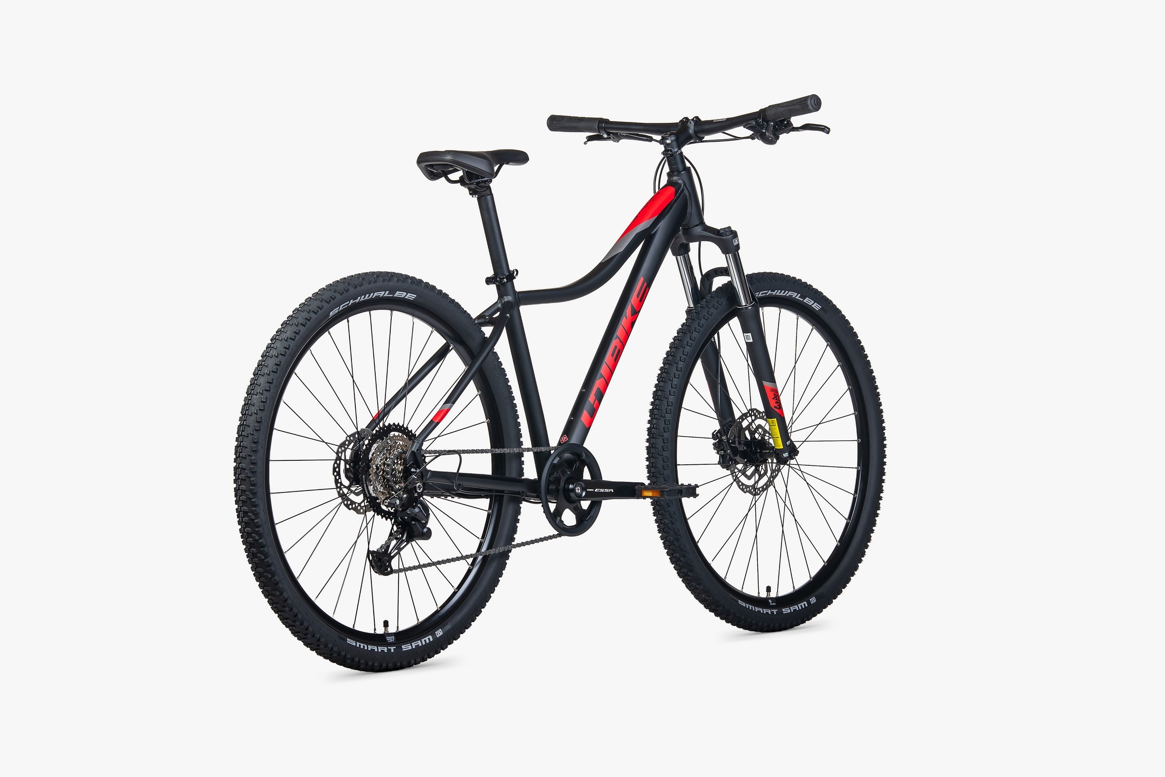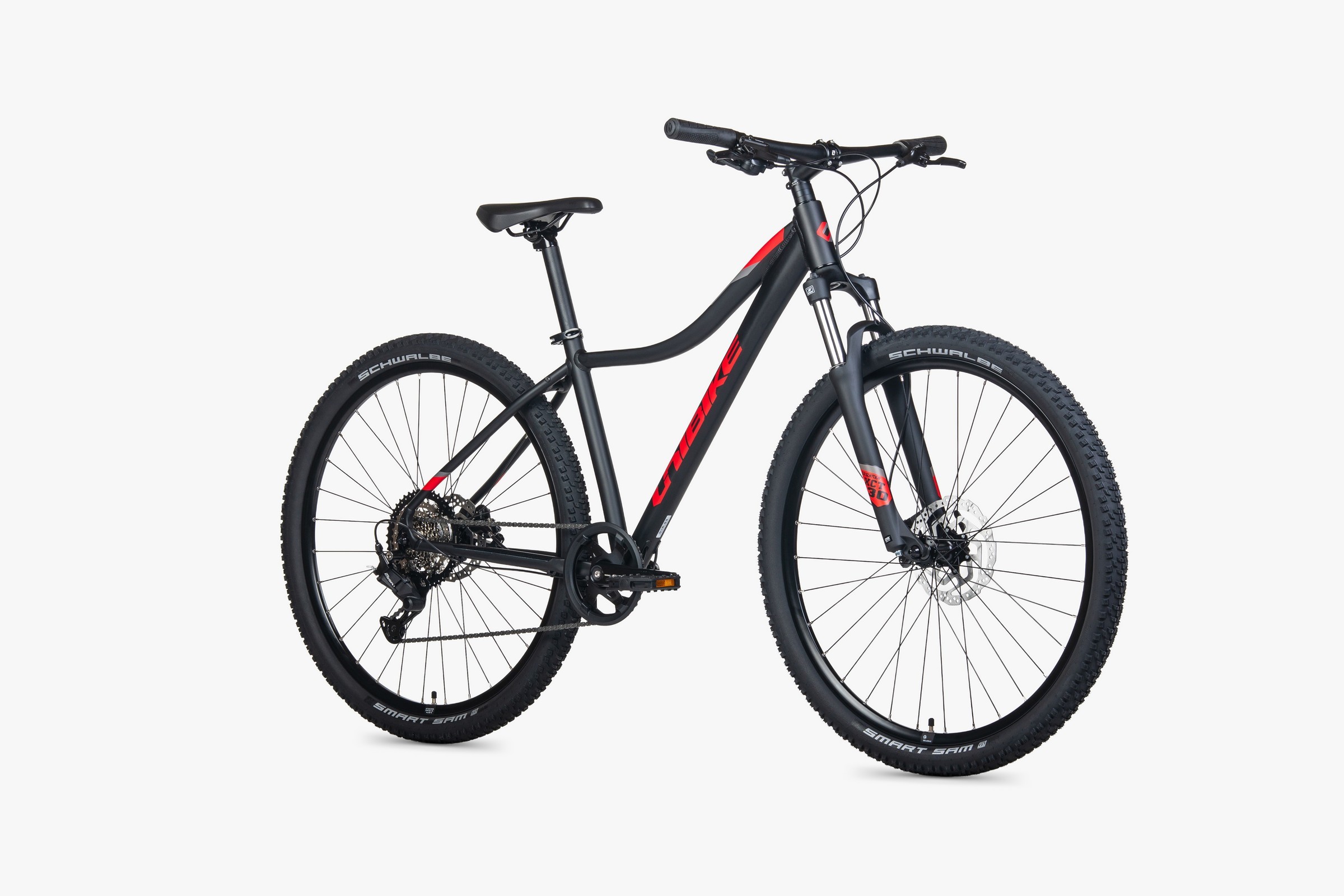 Duże, 29-calowe koła zbudowane na piastach SHIMANO QC300 i wzmacnianych obręczach JHT z zakuwkami z łatwością przetaczają się nad przeszkodami. Opony SCHWALBE SMART SAM (29x2.10) to legenda uniwersalności – zapewniają niskie opory toczenia na asfalcie i świetną przyczepność w terenie.