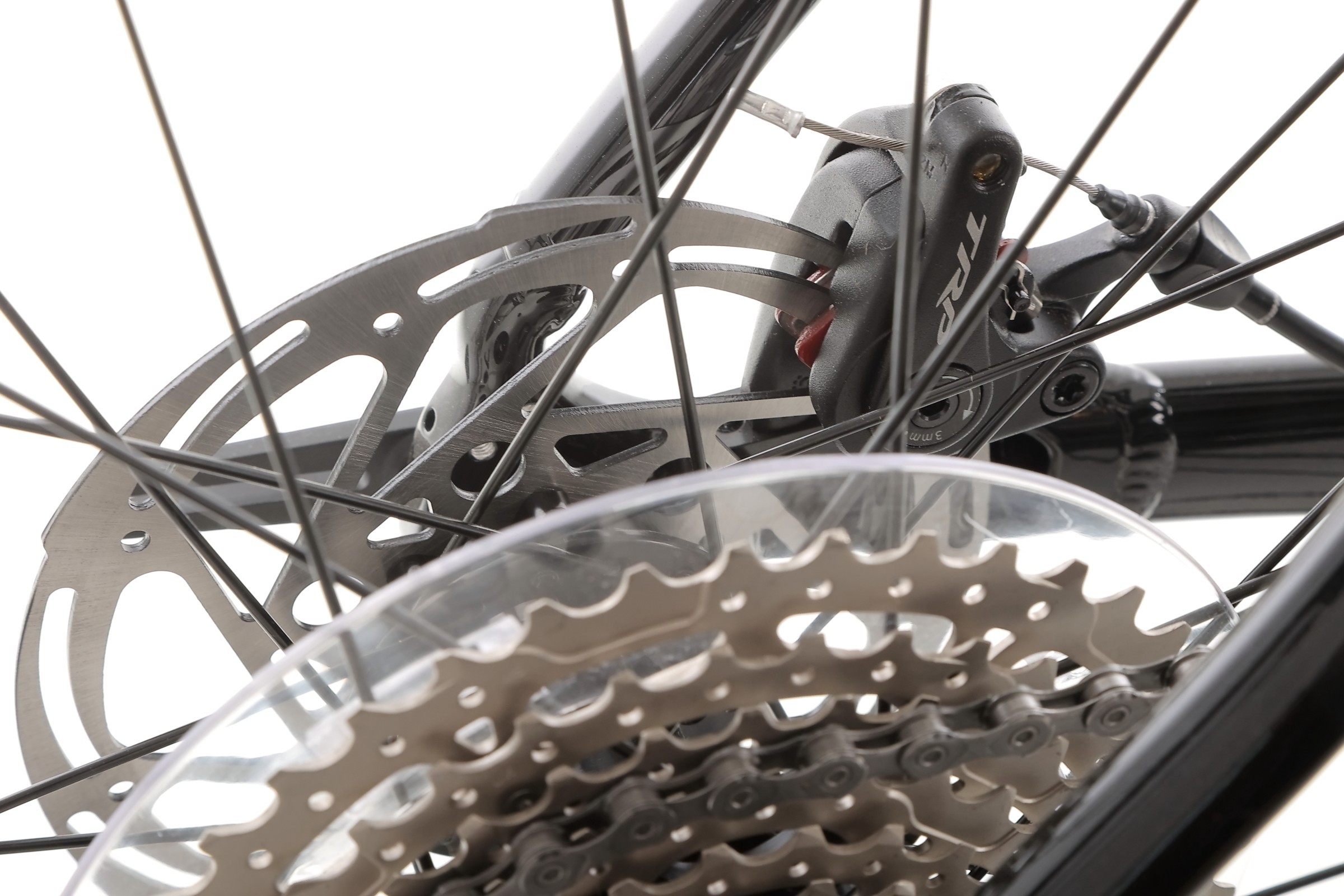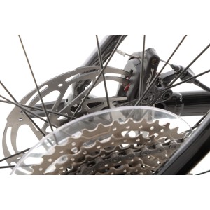 Za bezpieczeństwo odpowiadają mechaniczne hamulce tarczowe Tektro Spyre z tarczami 160 mm (Tektro M160 160 SC) zarówno z przodu, jak i z tyłu. To rozwiązanie gwarantuje stałą i mocną siłę hamowania niezależnie od pogody oraz łatwą obsługę i serwisowanie nawet podczas wyjazdów w teren.