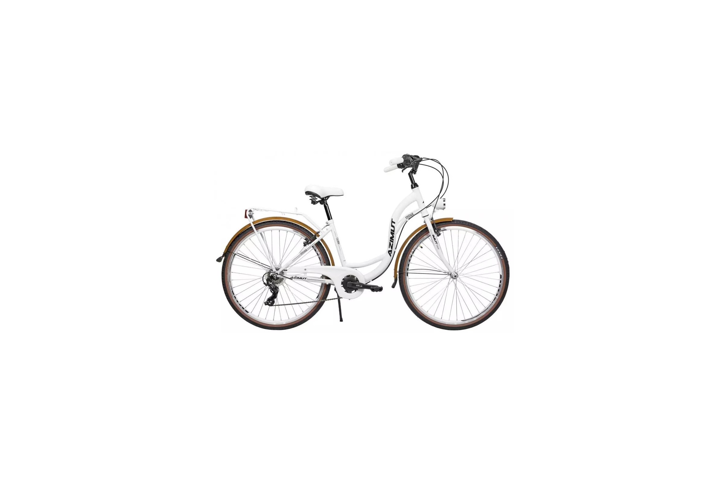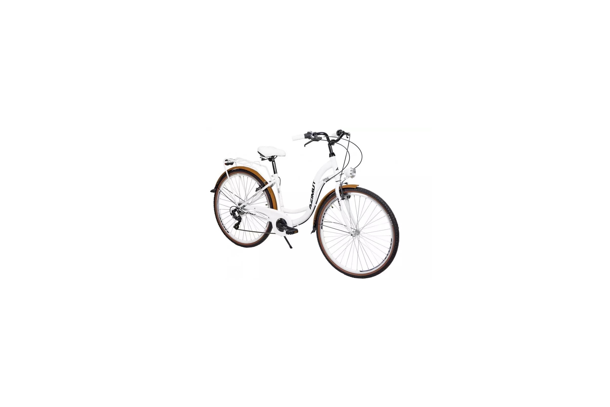 AZIMUT VINTAGE – To prawdopodobnie najlepsza oferta na rynku na rower z kołami 28", podwójnymi obręczami i 7 biegami Shimano Tourney. Przeznaczony do jazdy po mieście i na wsi, po asfalcie lub twardych szutrowych drogach. Idealny wybór dla osób lubiących tradycyjne rowery miejskie. 7-biegowy system pozwoli Ci wybrać najbardziej odpowiedni bieg według Twoich potrzeb. Przełożenia możesz łatwo zmieniać za pomocą pokrętła na kierownicy. Dzięki miejskiej geometrii ramy i zakrzywionej kierownicy możesz jeździć freestyle'owo, siedząc prawie wyprostowany. W standardzie posiada błotniki, które chronią przed wodą i brudem. Aby zapobiec zabrudzeniu ubrań podczas pedałowania i wplątaniu się między łańcuch a zębatkę - jest również osłona łańcucha. Oczywiście zadbano również o oświetlenie - zestaw zawiera przednie i tylne światła zasilane bateriami. Można je włączać i wyłączać. Nie musisz szukać słupka, ściany ani ogrodzenia, aby podeprzeć rower - możesz złożyć nogę parkingową. Rower posiada również tylny bagażnik. Miękkie i szerokie siodełko ze sprężynami, antypoślizgowe plastikowe pedały, opony miejskie o szerokości 47 mm z uniwersalnym bieżnikiem. Zatrzymujemy rower za pomocą hamulców szczękowych typu V-BRAKE - naciskając dźwignie hamulca na kierownicy (nie ma hamulca nożnego). Możesz indywidualnie dostosować wysokość/położenie siodełka i kierownicy do swoich potrzeb. Optymalny wybór dla rowerzystów o wzroście około 170 cm.