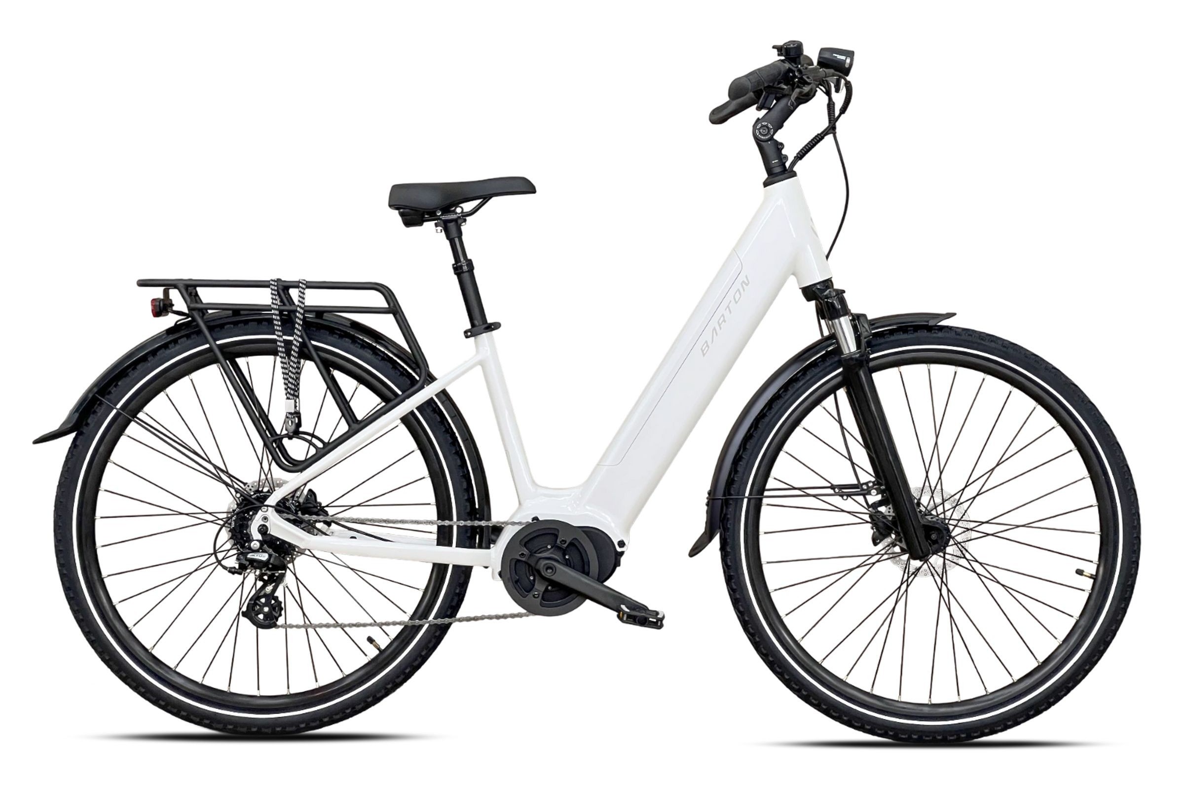 Rower miejski elektryczny Barton E-Smart Flow 026 - biały-perłowy