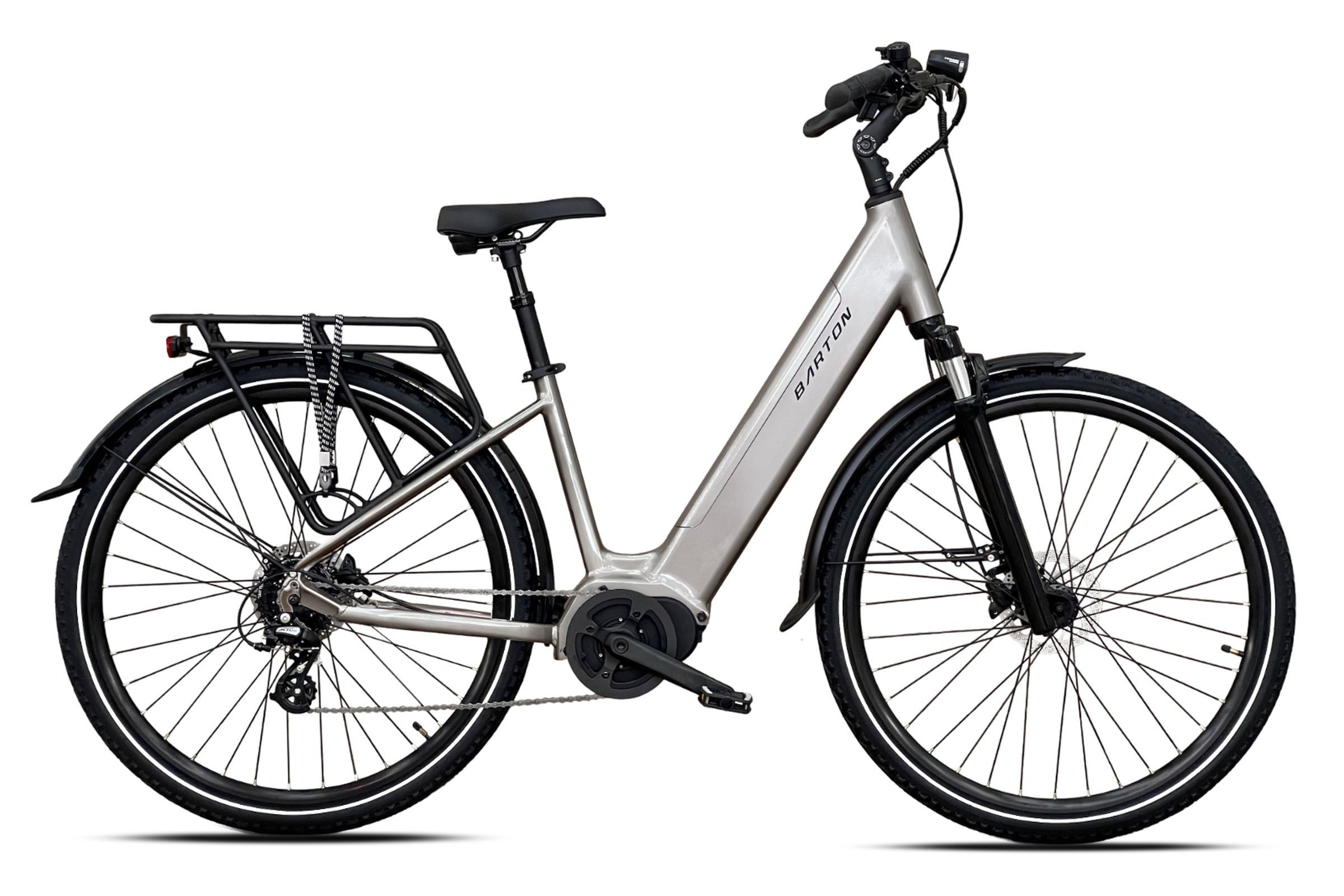 Rower zapewnia najwyższy komfort podróżowania dzięki amortyzowanemu wspornikowi siodła, ergonomicznemu siodełku Comfort Soft z elastomerami oraz profilowanym chwytom. Ponadto Barton E-Smart Flow 026 jest gotowy do jazdy od pierwszego dnia – w standardzie otrzymujesz kompletne wyposażenie obejmujące bagażnik, pełne błotniki, mocną podpórkę oraz wydajne oświetlenie.