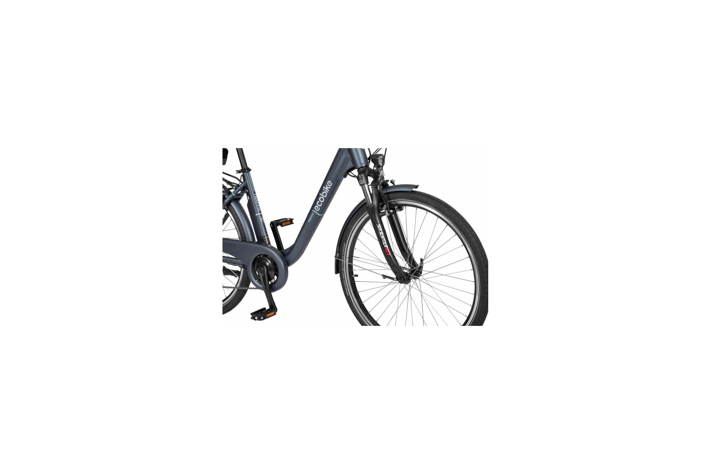 Poza tym rower spełni oczekiwania dotyczące komfortu i bezpieczeństwa. Traffic został wyposażony w kompletne oświetlenie zasilane baterią w bagażniku, przerzutki Shimano Altus, widelec amortyzowany SunTour CR8V, regulowany mostek, błotniki oraz wygodne siodełko Selle Royal®.