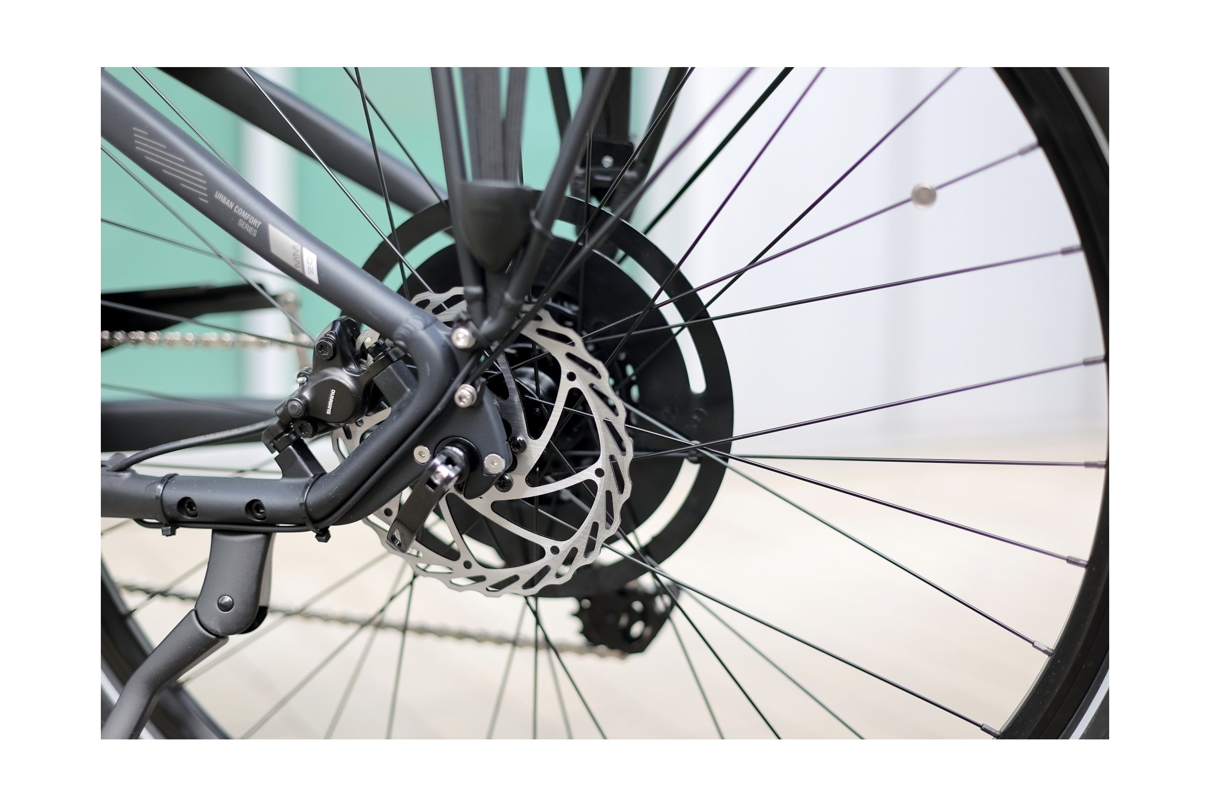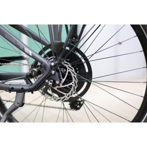 - za bezpieczeństwo odpowiadają mocne i pewne hydrauliczne hamulce tarczowe Shimano, z tarczami o średnicy 180 mm oraz 160 mm, niezbędne w rowerze elektrycznym,