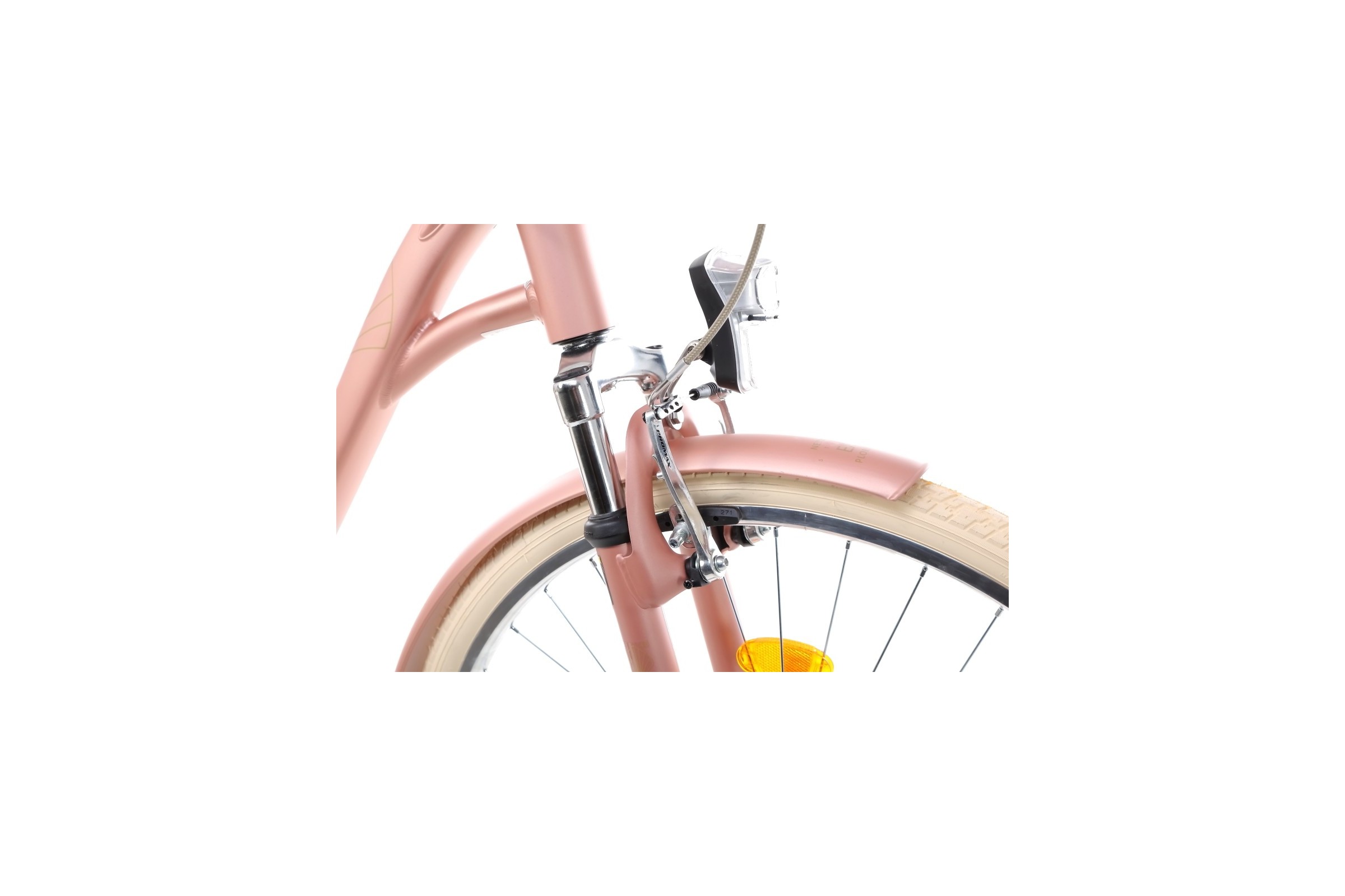 Kolorystycznie dopasowane siodełko, chwyty kierownicy oraz w połączeniu z klasyczną ramą sprawiają, że rower prezentuje się wyjątkowo stylowo i oryginalnie.