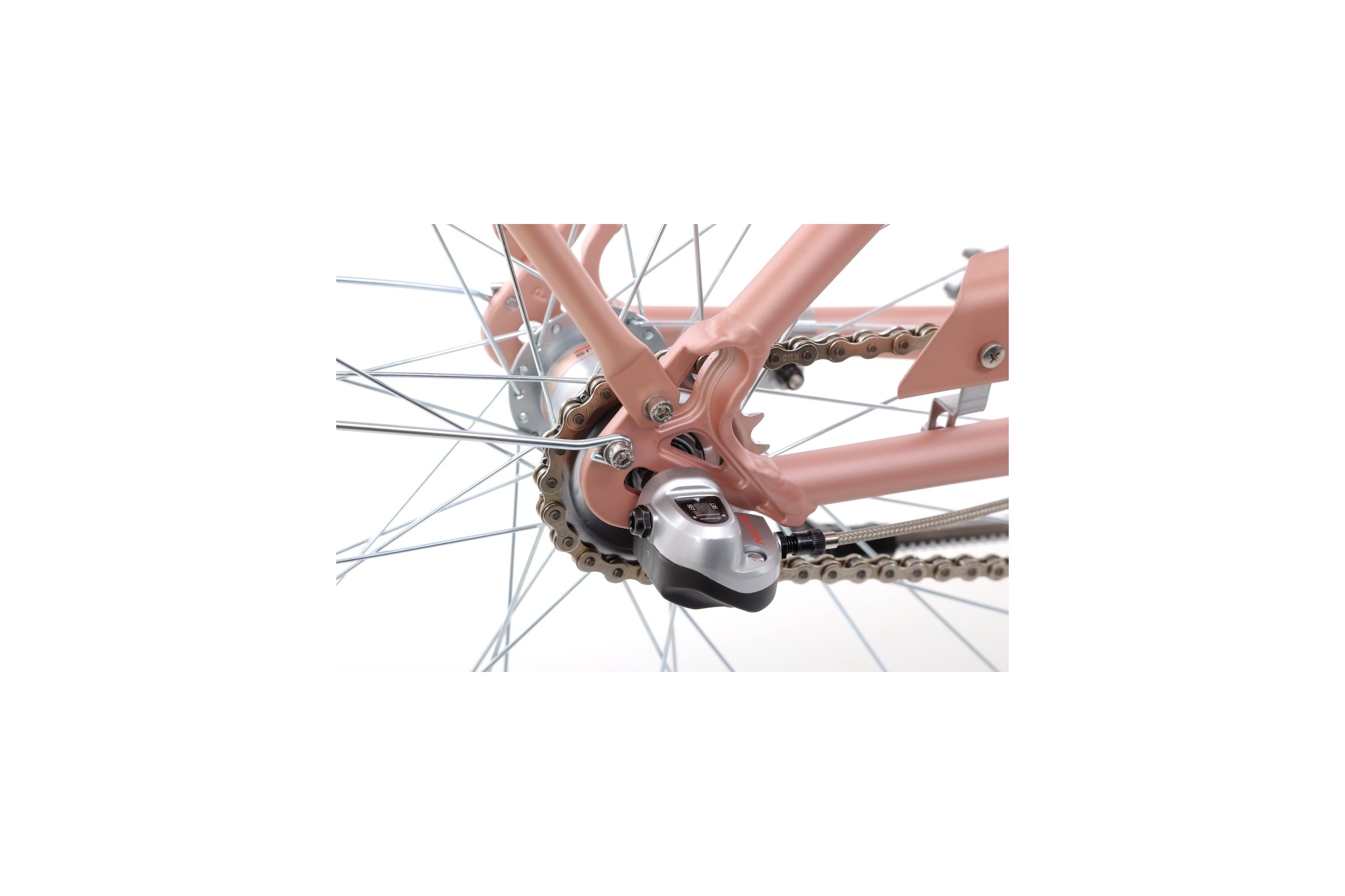 Rower wyróżnia się na tle konkurencji stylowym metalowym koszykiem wzbogaconym w wyściółkę oraz uchwytem na kubek umieszczonym na kierownicy. Zarówno koszyk jak i uchwyt zostały wykonane z polerowanej stali.