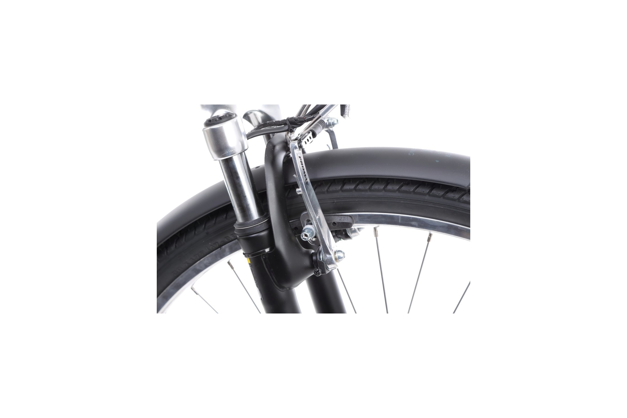 Rower posiada 28-calowe aluminiowe, dwukomorowe obręcze oraz szerokie opony 28×1,75, które gwarantują stabilność i dobrą przyczepność na różnych nawierzchniach.