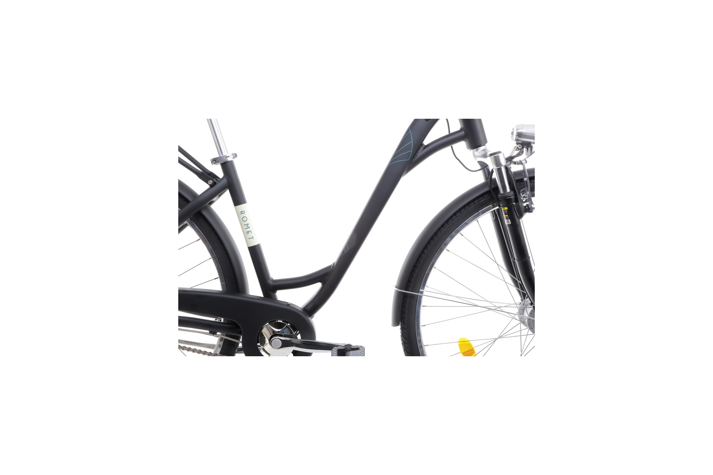 Romet Art Deco Lux jest wyposażony w błotniki, oświetlenie LED zasilane dynamem w piaście Shimano, bagażnik, podpórkę oraz osłonę łańcucha. Dodatkowo wyróżnia się stylowym, metalowym koszykiem na kierownicę z wyściółką i uchwytem na kubek, wykonanymi z polerowanej stali, co czyni go wyjątkowo praktycznym i oryginalnym.