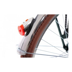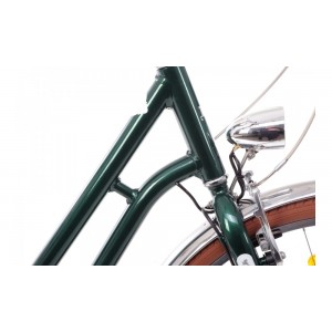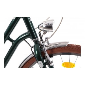 Rower prezentuje się wyjątkowo stylowo i oryginalnie. Oświetlenie zasilane prądnicą zapewnia dobrą widoczność po zmroku bez ryzyka, że w trakcie jazdy wyładuje się bateria i świtało zgaśnie. Ciekawym rozwiązaniem jest uchwyt na kubek umieszczony na kierownicy. Rower jest idealną propozycją dla aktywnych kobiet, które potrzebują mieć kawę zawsze pod ręką...