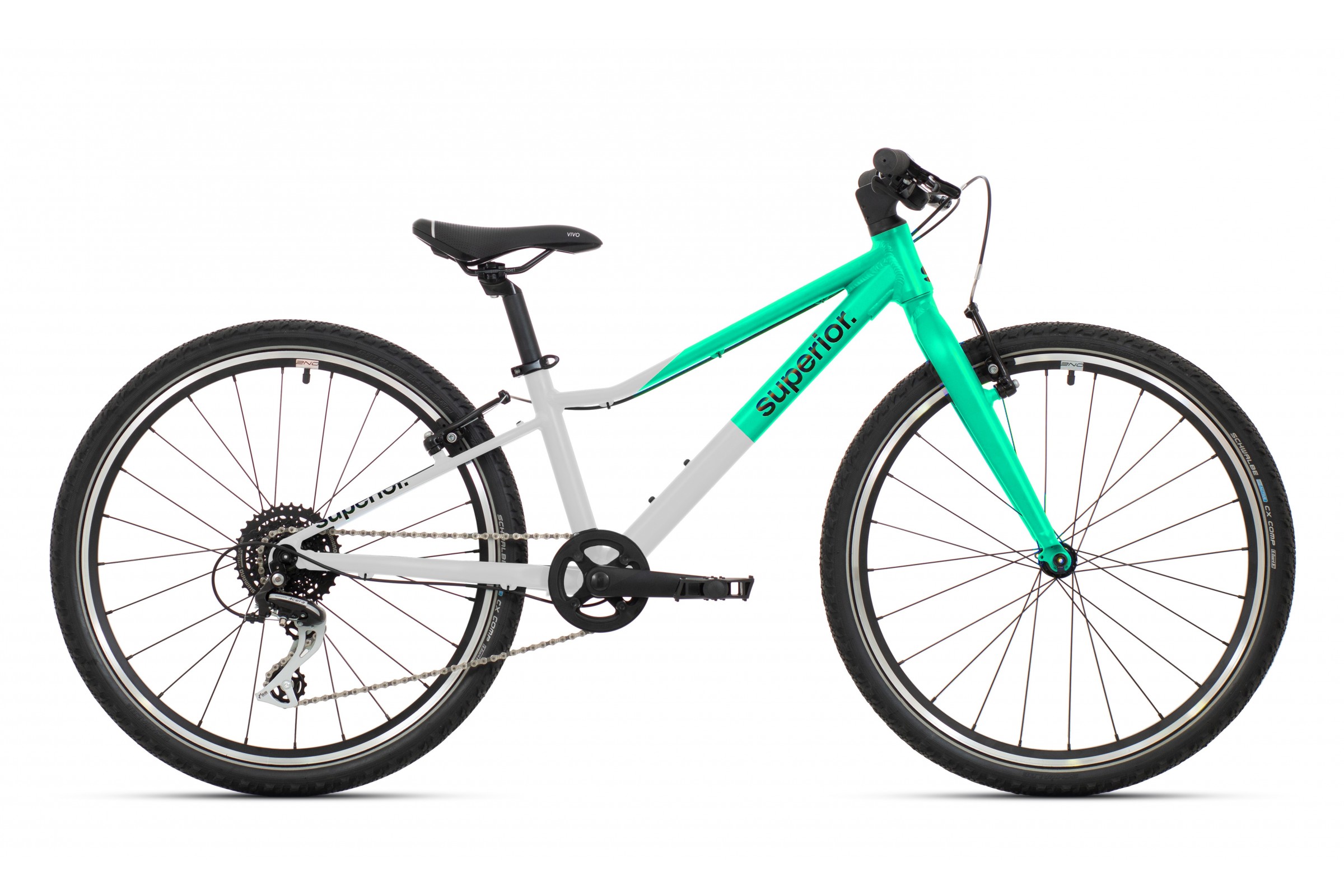 Superior zadbał o każdy detal wpływający na wygodę. Rower posiada siodełko Selle Royal Explora Junior, które jest ergonomicznie dopasowane do dziecięcej budowy ciała. Kokpit (kierownica i wspornik) marki ONE oraz chwyty Lock-On (zapobiegające obracaniu się rączek) zapewniają pewne i wygodne sterowanie. Całość dopełniają pedały VP Components.