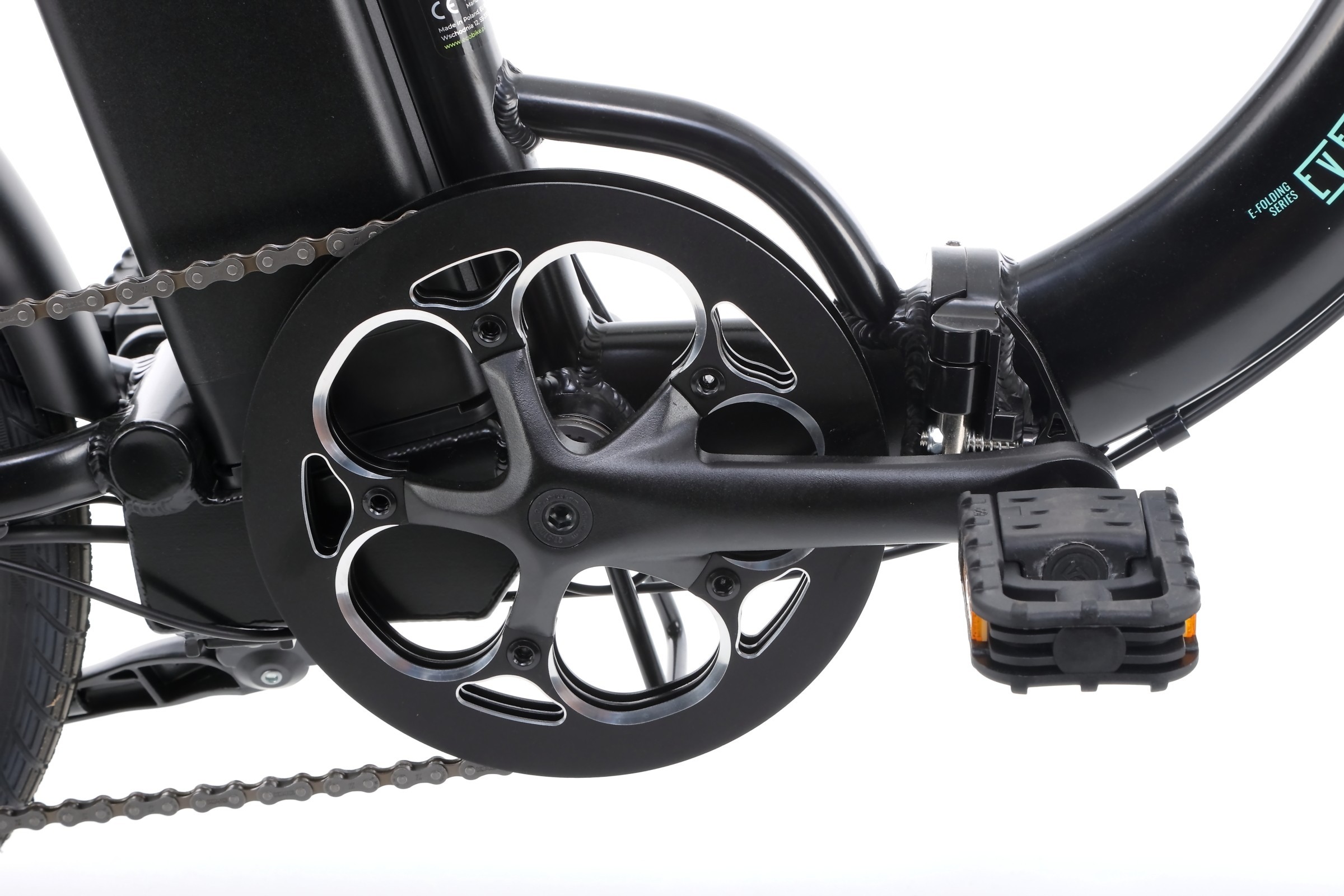 Ecobike Even jest rowerem składanym ze wspomaganiem elektrycznym o mocy 250W. Aby uzyskać najlepszą stabilność jazdy, umieściliśmy silnik w tylnej piaście. Rower rozpędza się do 25 km/h, a nowoczesny kontroler sprawia, że robi to płynnie. Baterie wyprodukowane na ogniwach firm Greenway pozwalają pokonać od 50 km, aż do 140 km! Baterie są umiejscowione za rurą podsiodłową w pionie, co pozwala je bardzo wygodnie wyjmować.