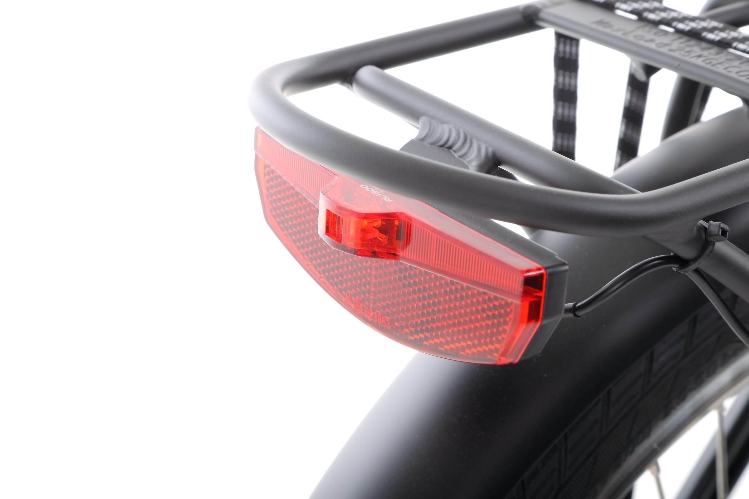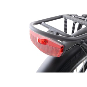 Wśród wyposażenia znajduje się kompletne oświetlenie, zasilane z głównej baterii roweru. Dodaliśmy też praktyczny bagażnik i błotniki.