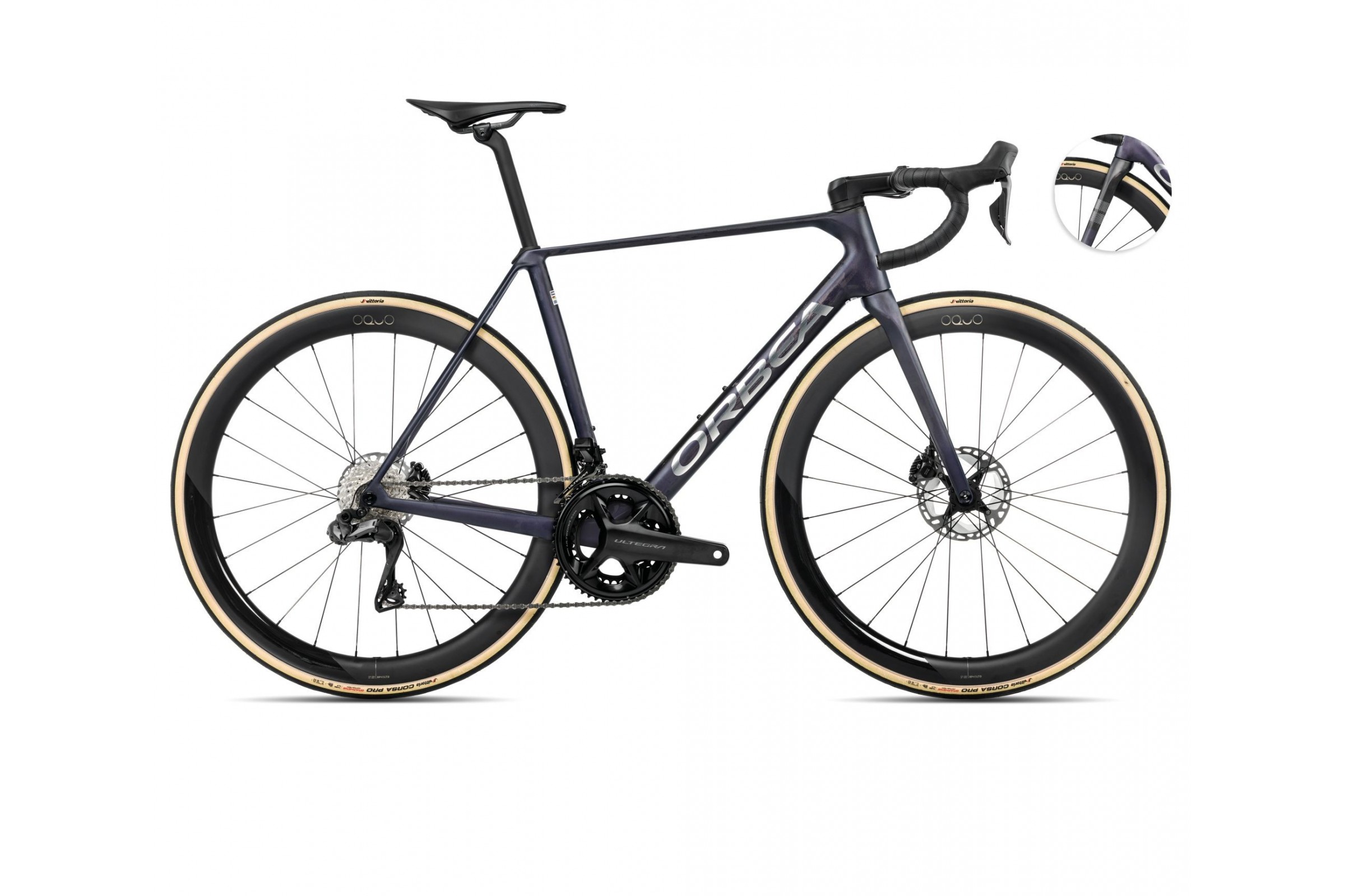 Karbonowa sztyca OC Performance XP10-S o średnicy 27.2 mm oraz siodełko Fizik Vento Antares R1 z karbonowymi prętami łączą komfort z minimalizacją wagi. Dopełnieniem jest antypoślizgowa oraz amortyzująca owijka Orbea Anti-Slippery/Shock Proof, która zapewnia pewny chwyt i wygodę podczas najdłuższych treningów lub zawodów.