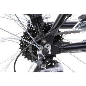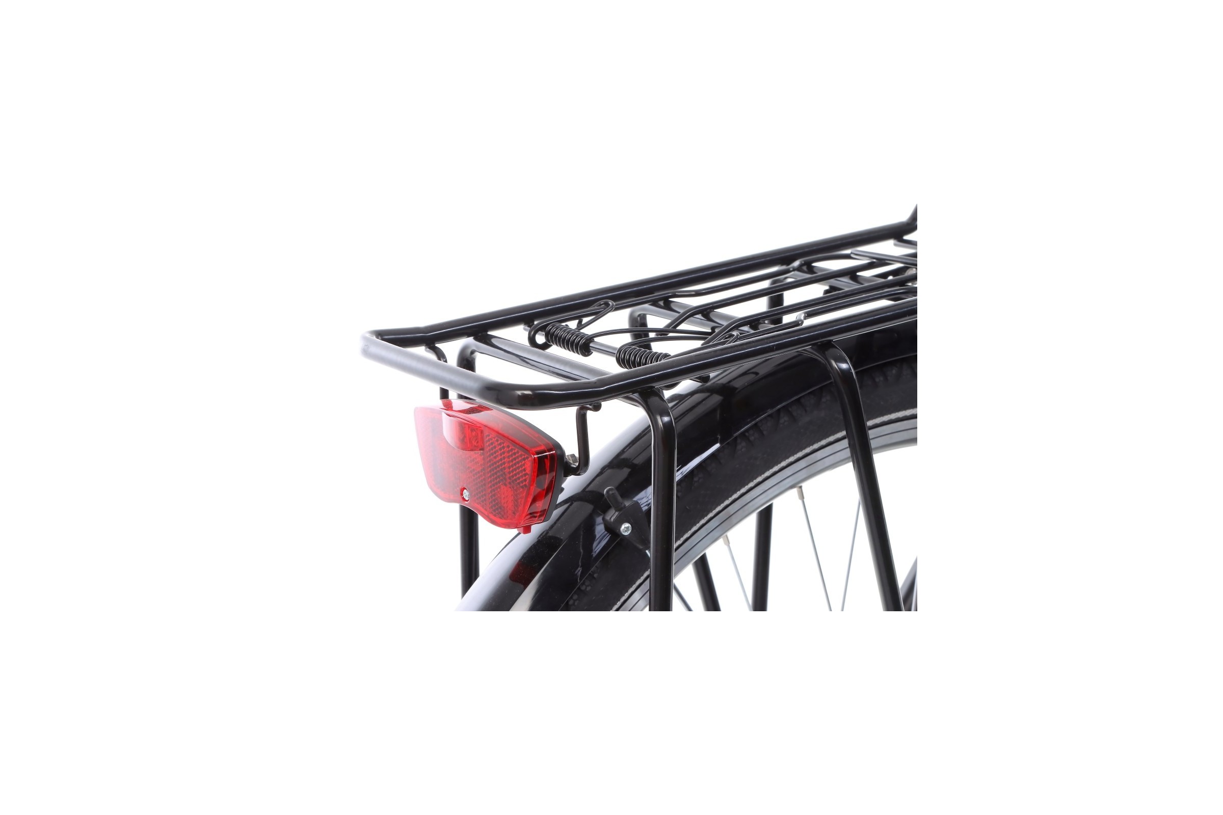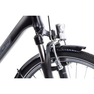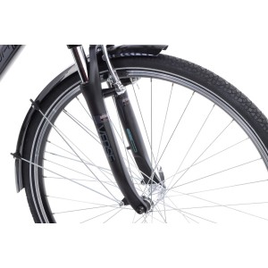 * pełne wyposażenie: błotniki, bagażnik, osłona łańcucha, stopka, regulowany wspornik kierownicy, amortyzowana sztyca siodła