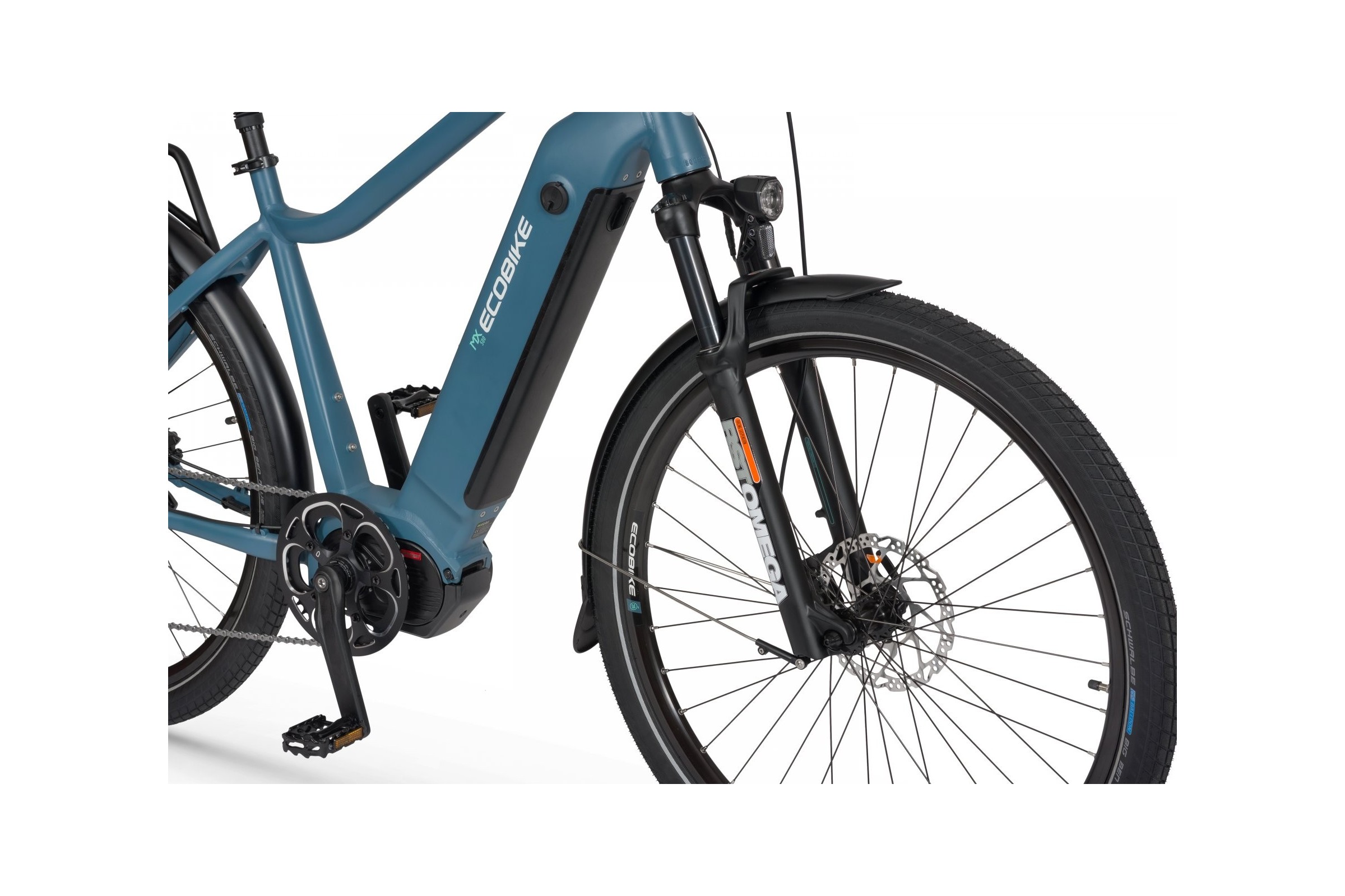 W Ecobike postęp technologiczny spotyka się z pasją do rowerów. MX500 jest tego dumnym przykładem – oprócz sprawdzonej technologii nie mogło w nim zabraknąć niezawodnych podzespołów. Trakcja w rowerze taki ja ten, to podstawa. Zadbaliśmy o nią, stosując amortyzowany widelec RST® OMEGA TNL oraz opony Schwalbe® Big Ben Plus 28x2.15. Najwyższy poziom bezpieczeństwa zapewniają tarczowe hamulce hydrauliczne Shimano MT400. Przerzutka w rowerze elektrycznym z silnikiem centralnym musi wykazywać się dużą wytrzymałością. W MX500 zastosowaliśmy model Shimano Deore.