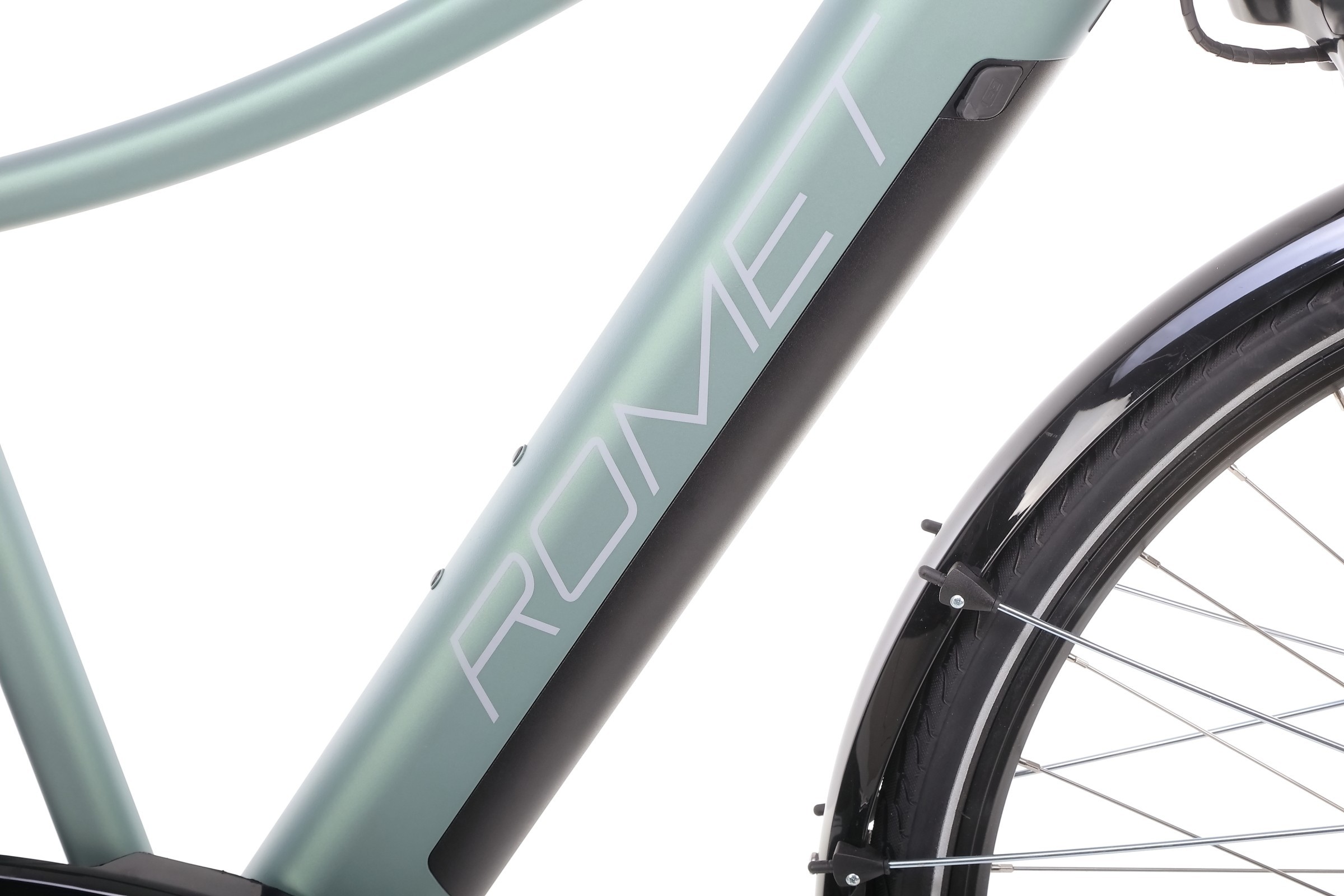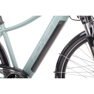 Rower trekkingowy elektryczny Romet Orkan RM 2 D Integrated - pistacjowo-łososiowy