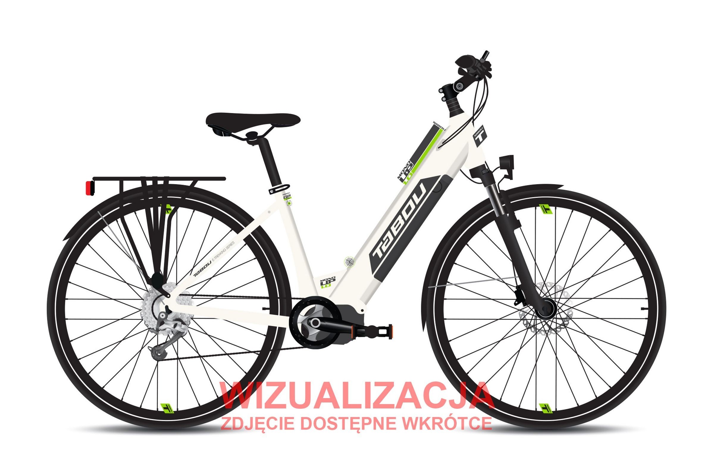 Rower trekkingowy elektryczny Tabou Mono UP 1.0 26 026 - biało-zielony