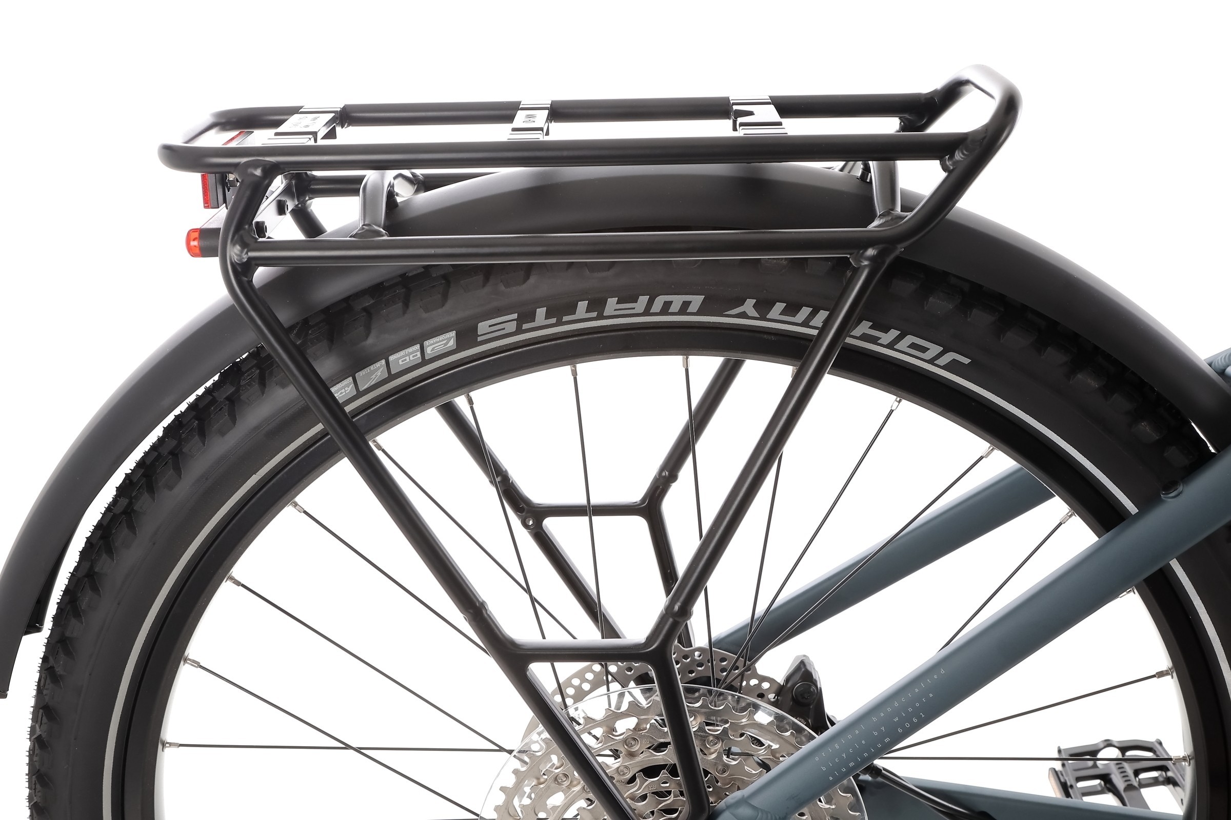Aluminiowe obręcze Schürmann Yak25 zapewnią wytrzymałość i bezpieczeństwo. Uzbrojone w solidne opony Schwalbe Johnny Watts poradzą sobie z pokonywaniem zróżnicowanych nawierzchni. Opony te pozwolą zachować znakomitą przyczepność w terenie. Średnica 27,5 cala sprawia, że takie koła będą zarówno szybkie na prostych odcinkach, jak i zwrotne w terenie.