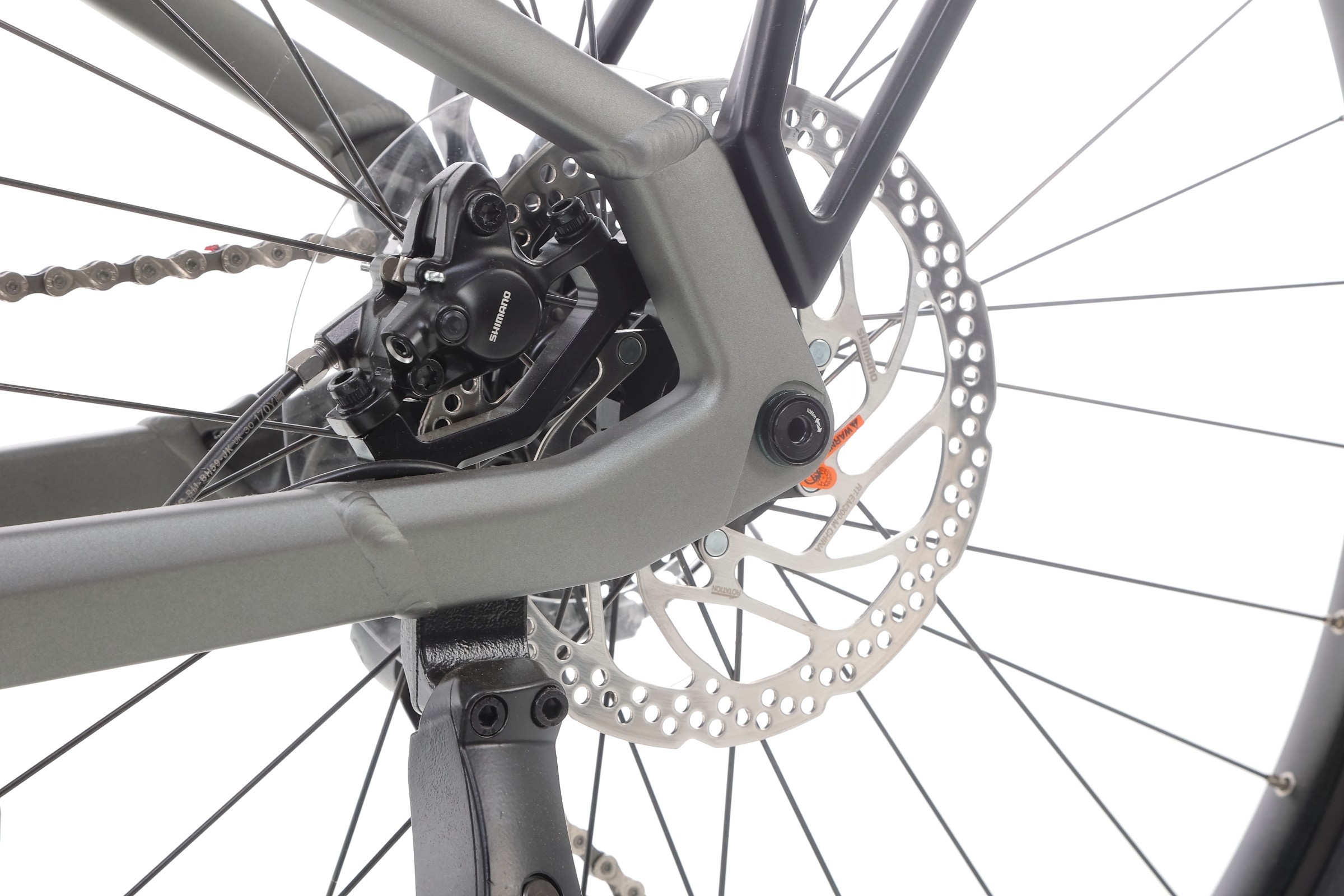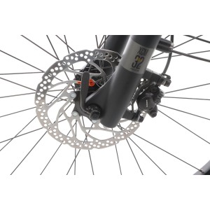 Rower wyposażony jest w niezawodne hamulce tarczowe Shimano MT201, które gwarantują wysoką skuteczność i bezpieczeństwo podczas hamowania. Tarcze o średnicy 180 mm z przodu i 160 mm z tyłu zapewniają precyzyjne zatrzymanie, nawet w trudnych warunkach atmosferycznych. W połączeniu z lekkością roweru, hamulce te oferują doskonałą kontrolę nad pojazdem.