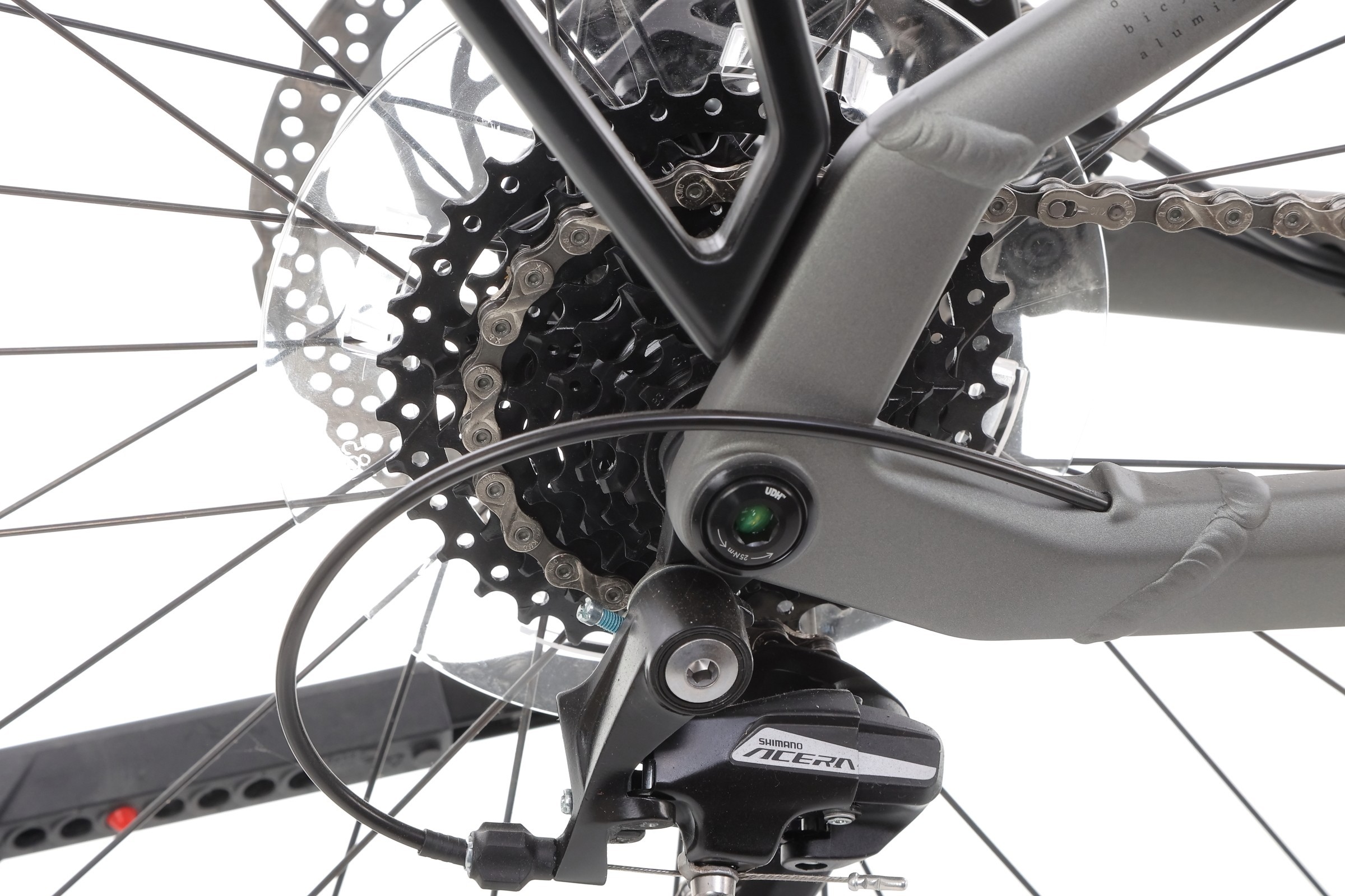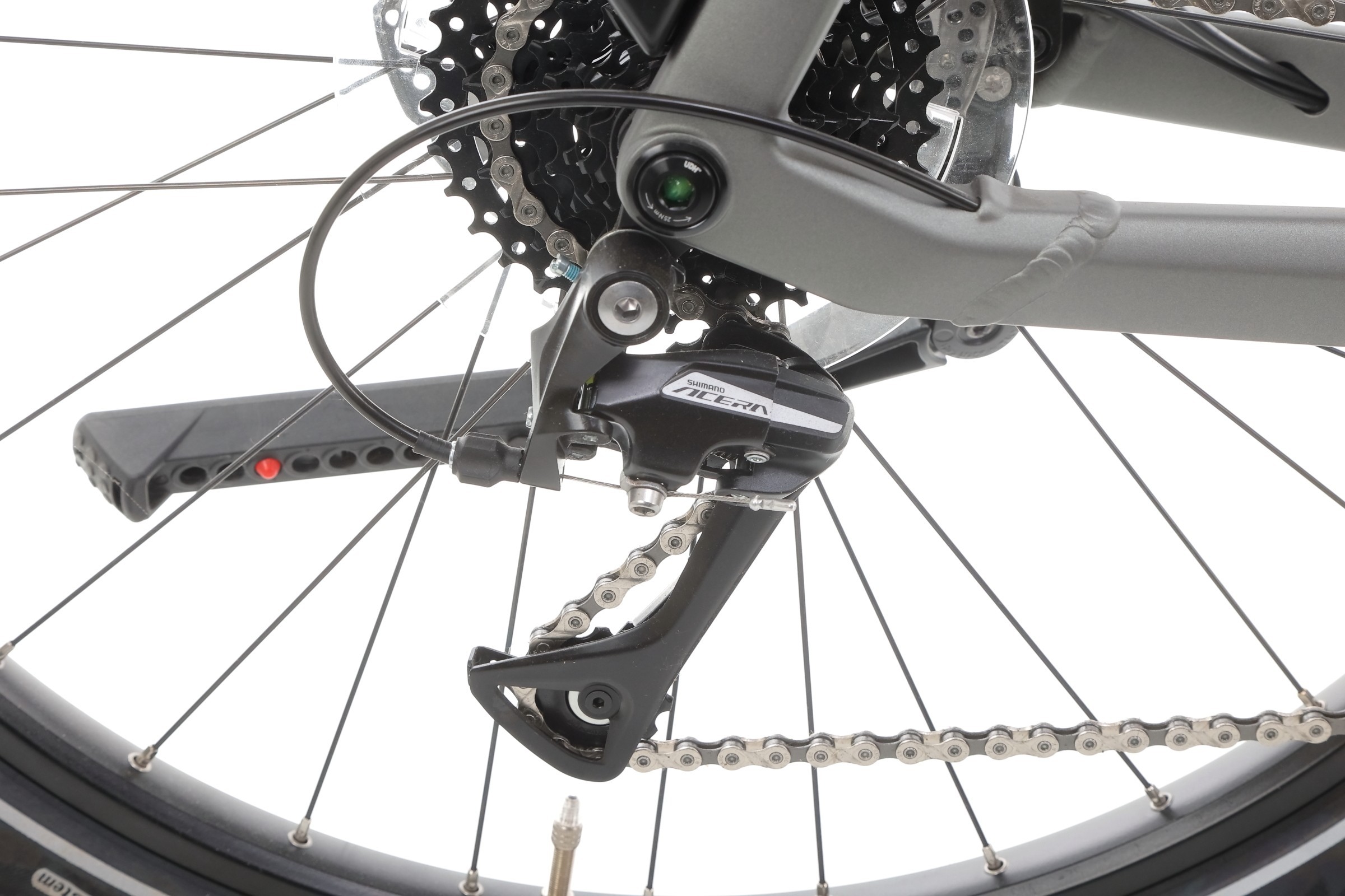 Zastosowanie przerzutki Shimano Acera M3020-8 i kasety Shimano CS-HG400-8 z zakresem zębów 11-40 sprawia, że przełączanie biegów jest płynne, a rower poradzi sobie w różnych warunkach terenowych. Kaseta oferuje szeroki zakres przełożeń, idealny zarówno do jazdy po płaskich drogach, jak i podjazdów.