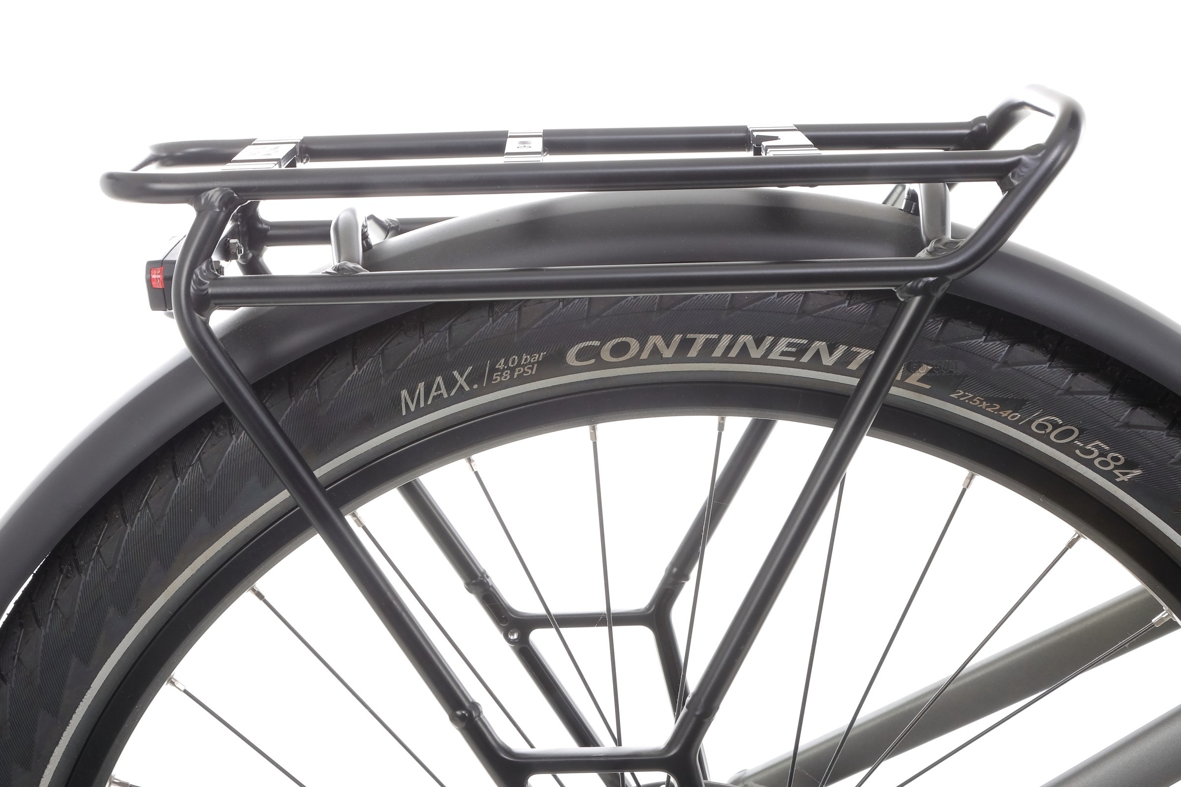 Zestaw kół 27.5" z obręczami Schürmann Yak25 zapewnia wyjątkową stabilność i wytrzymałość. Te aluminium obręcze, z oczkami i systemem hollow, są lekkie, ale niezwykle trwałe. Dodatkowo opony Continental Contact Cruiser z paskami odblaskowymi zapewniają pewność jazdy, a także zwiększają widoczność po zmroku.