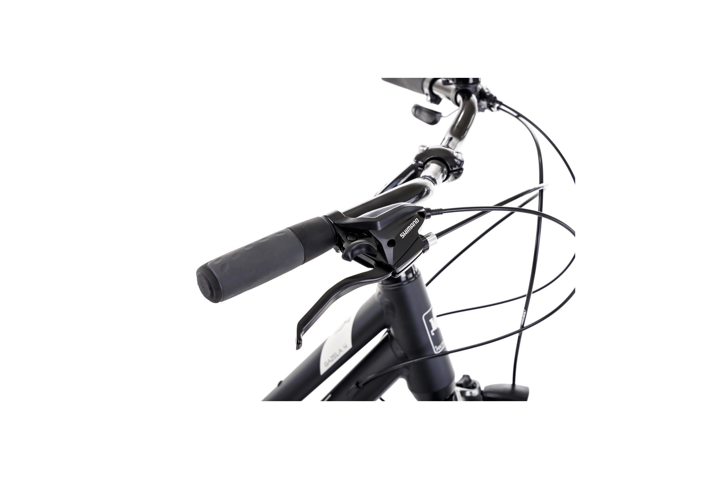 Gazela 4 to klasyczny rower o wszechstronnym zastosowaniu. Niewątpliwie pomaga w tym bogate wyposażenie standardowe, w skład którego wchodzą m.in. błotniki, komplet oświetlenia czy bagażnik tylny. Rower dzięki wyposażeniu w przedni amortyzator Suntour o ugięciu 63 mm, sprawia, że jazda poza asfaltem potrafi być naprawdę komfortową. Nie tylko w terenie wysokiej klasy napęd Shimano oferujący 21 przełożeń będzie sporym ułatwieniem podczas jazdy. Gazela 4 ubrana została w hamulce tarczowe, które nie mają żadnych kłopotów, by zatrzymać aluminiowe koła o średnicy 28 cali. Model posiada regulowany mostek, który pozwala na łatwe ustawienie odpowiedniej pozycji. To w połączeniu z wygodnym siodełkiem Selle Royal sprawia, że można pozwolić sobie na wielogodzinną jazdę. Rower dostępny jest w 2 wersjach kolorystycznych i dwóch rozmiarach ramy.