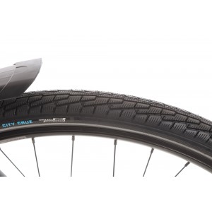 Rama tego przeznaczonego dla kobiet roweru trekkingowego wykonana została z aluminium. Konstrukcja wyróżnia się odpowiednią sztywnością i dużą odpornością na uszkodzenia mechaniczne. Schodząca mocno w dół górna rura sprawia, że jazda odznacza się wysokim komfortem.